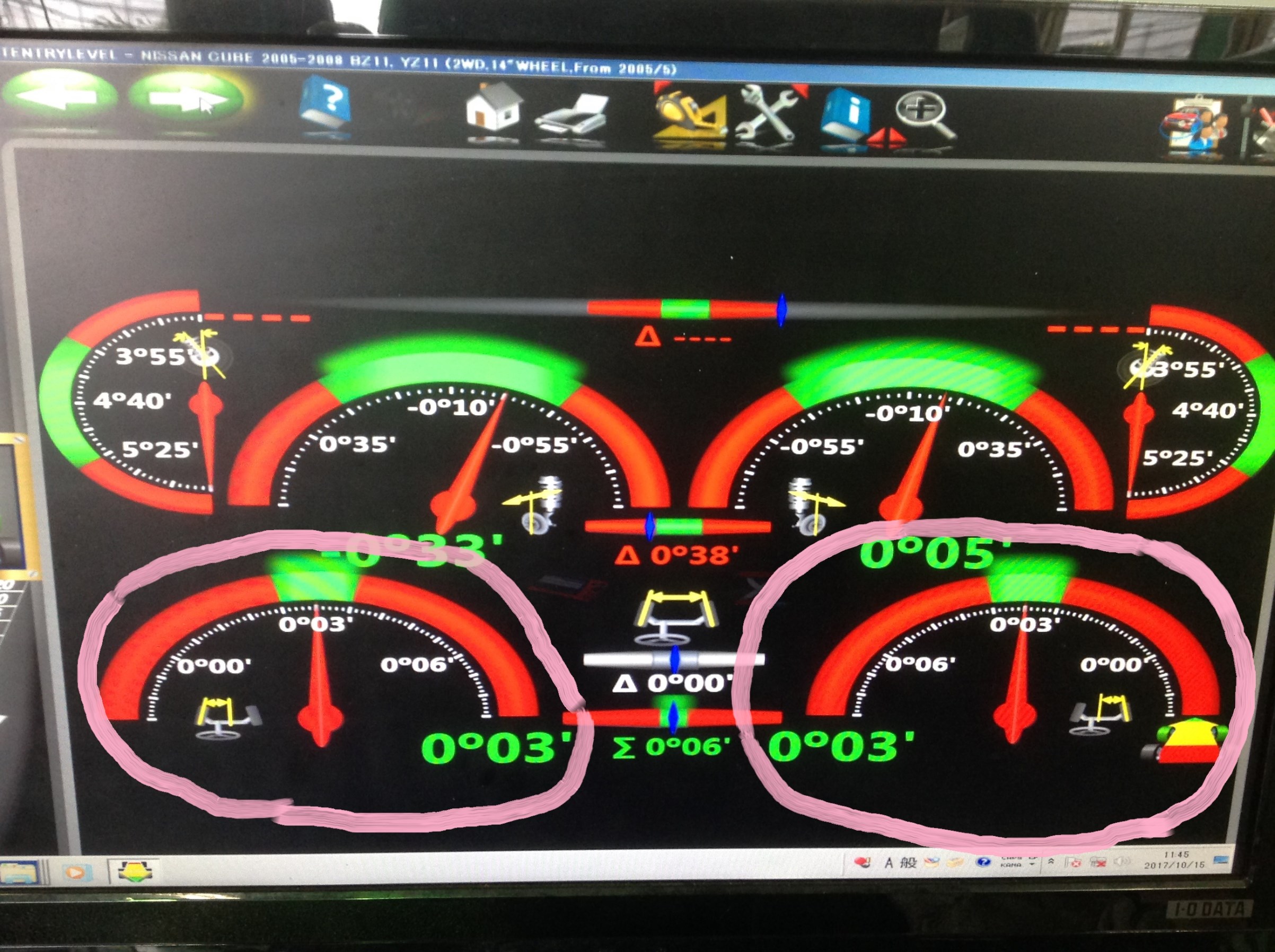 キューブのタイヤの爪先の向きは、真っ直ぐよりも少し内股が基準値ど真ん中なのでそこに調整させていただきました♪