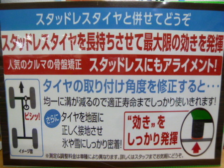 スタッドレスタイヤの装着と同時にアライメント調整をオススメします!