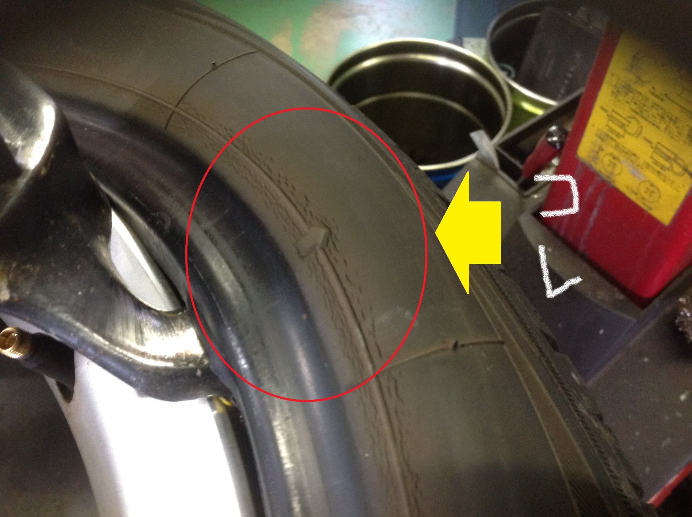 今回のタイヤ交換の理由は、タイヤの劣化(ゴムの硬化「ヒビ割れ」)です!!