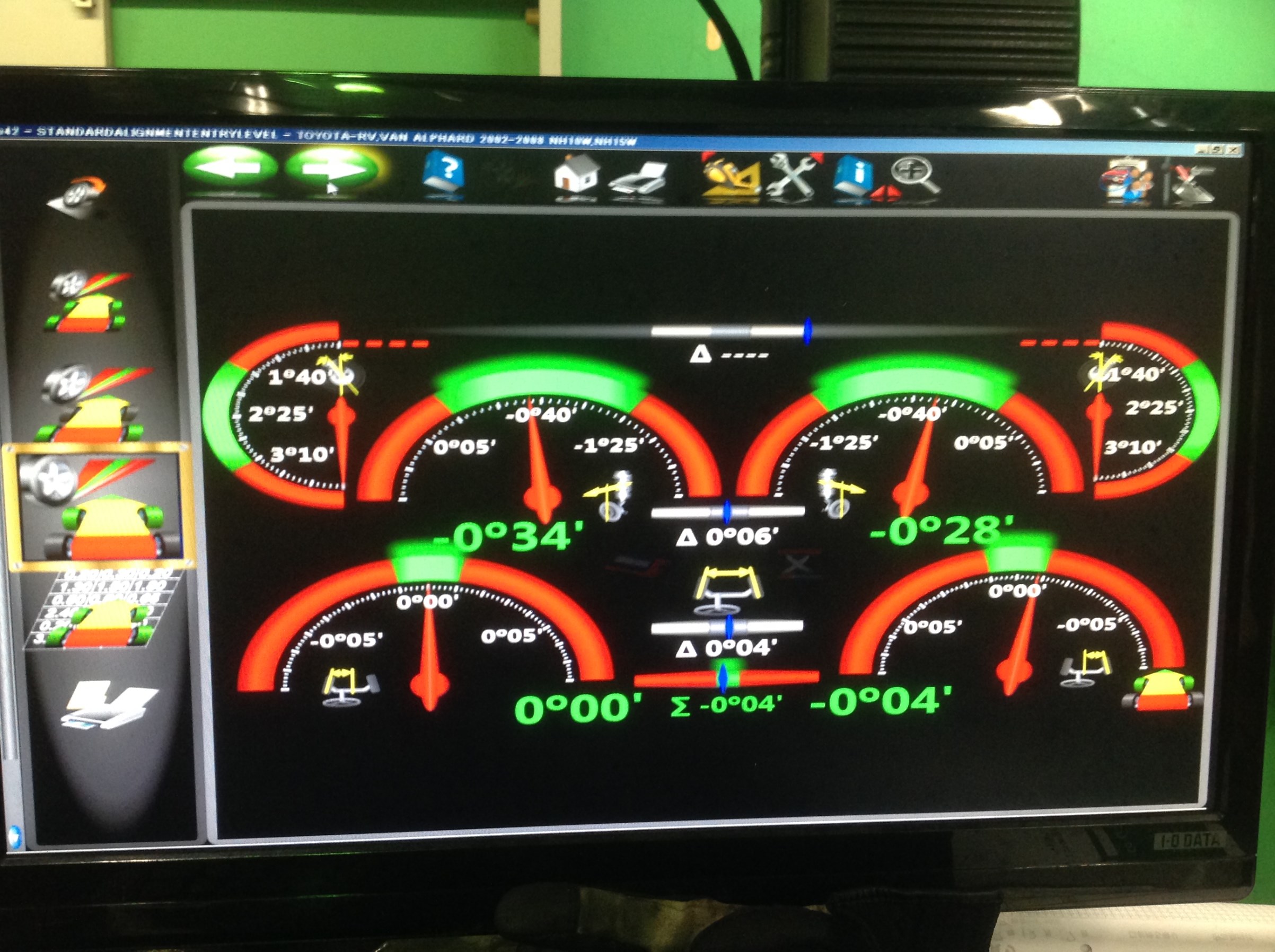 ほぼ、緑色なので、基準値内におさまっていますが、左右差がちょっとだけあるので、微調整して納車させて頂きました(^^)/