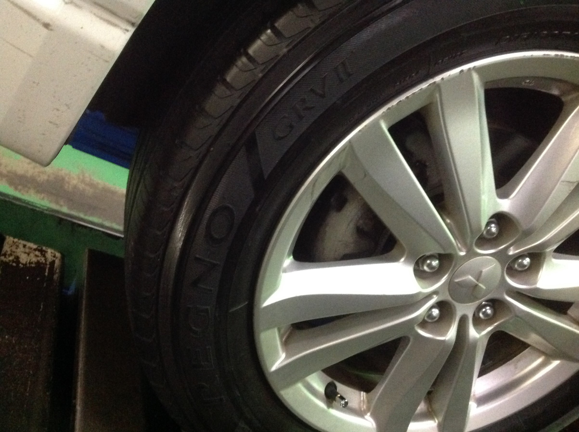 写真ではもうタイヤ交換を終えてアライメント調整中♪