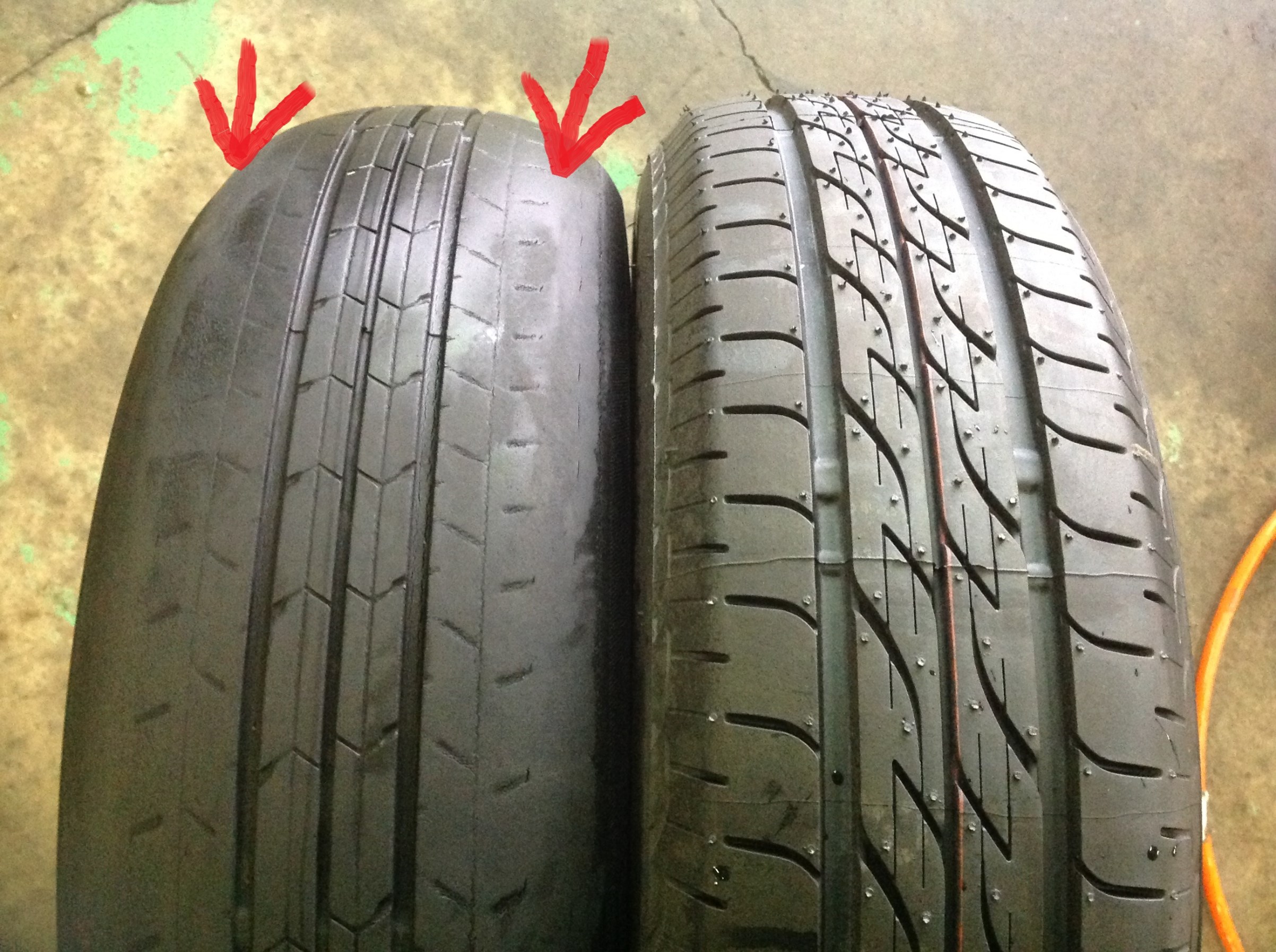 タイヤの内側・外側が異常に摩耗しています・・・。しかしてその原因とは・・・?
