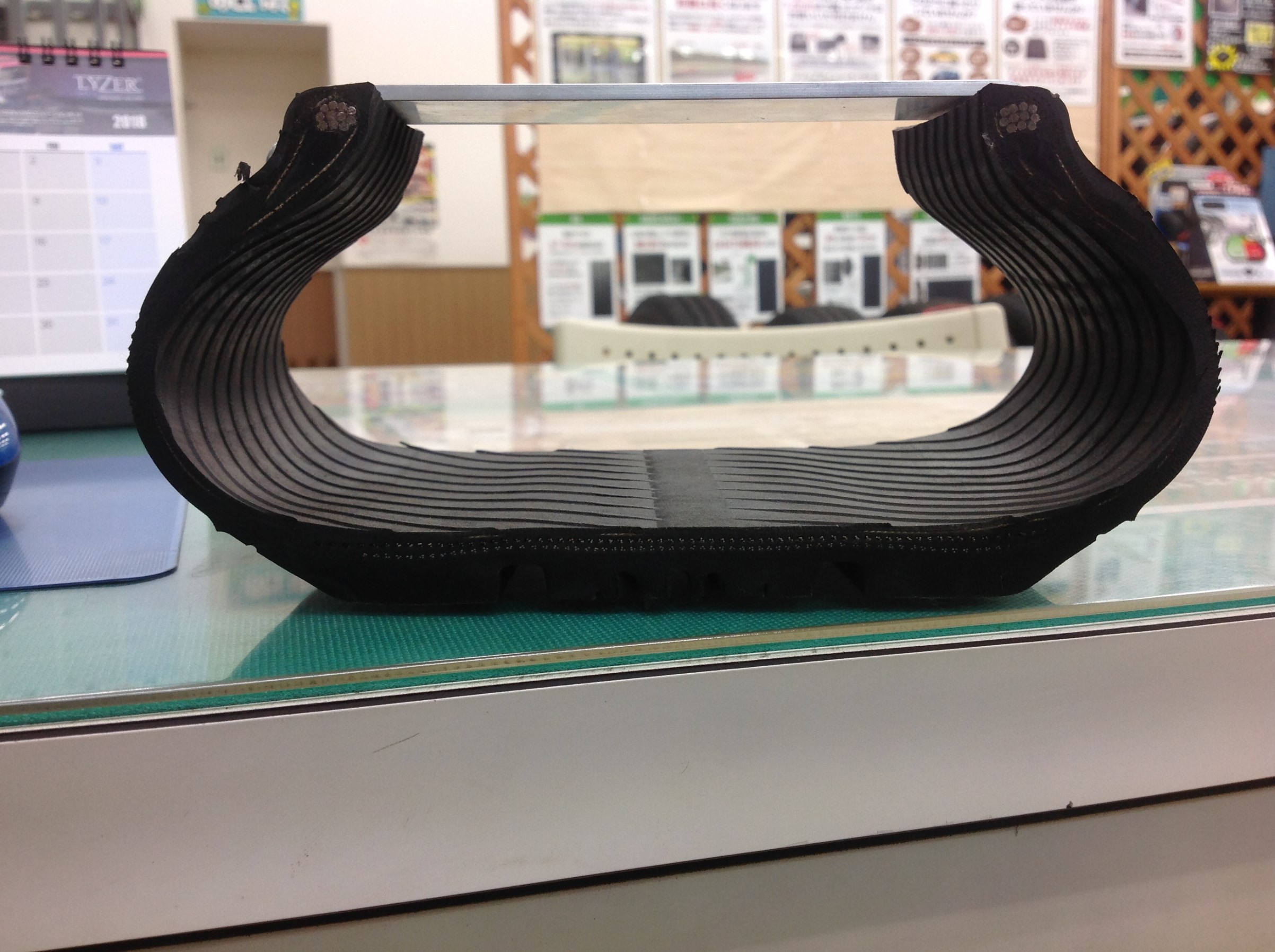 ギリギリでバーストしなかった右前タイヤと新品タイヤの比較
