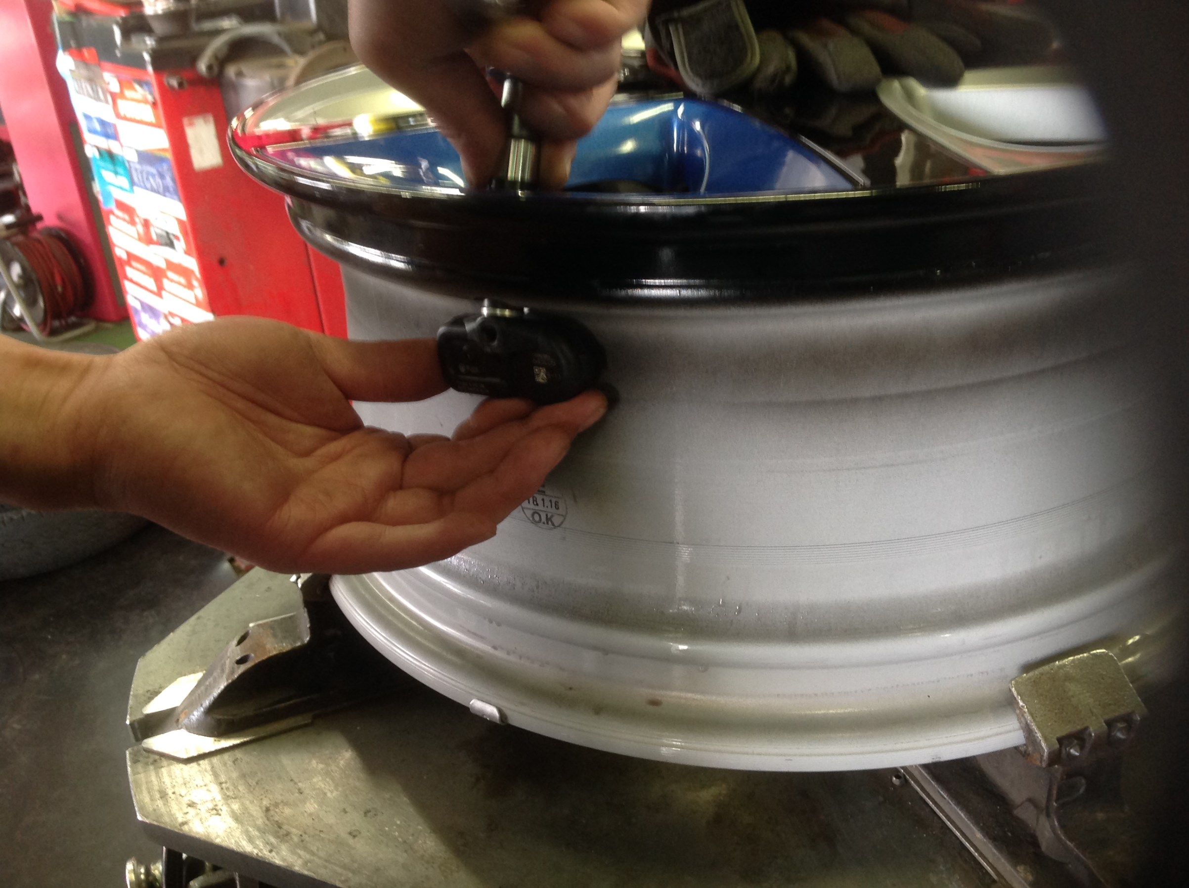 純正タイヤを丁寧に取り外して、TPMSセンサーをお取り付け♪
