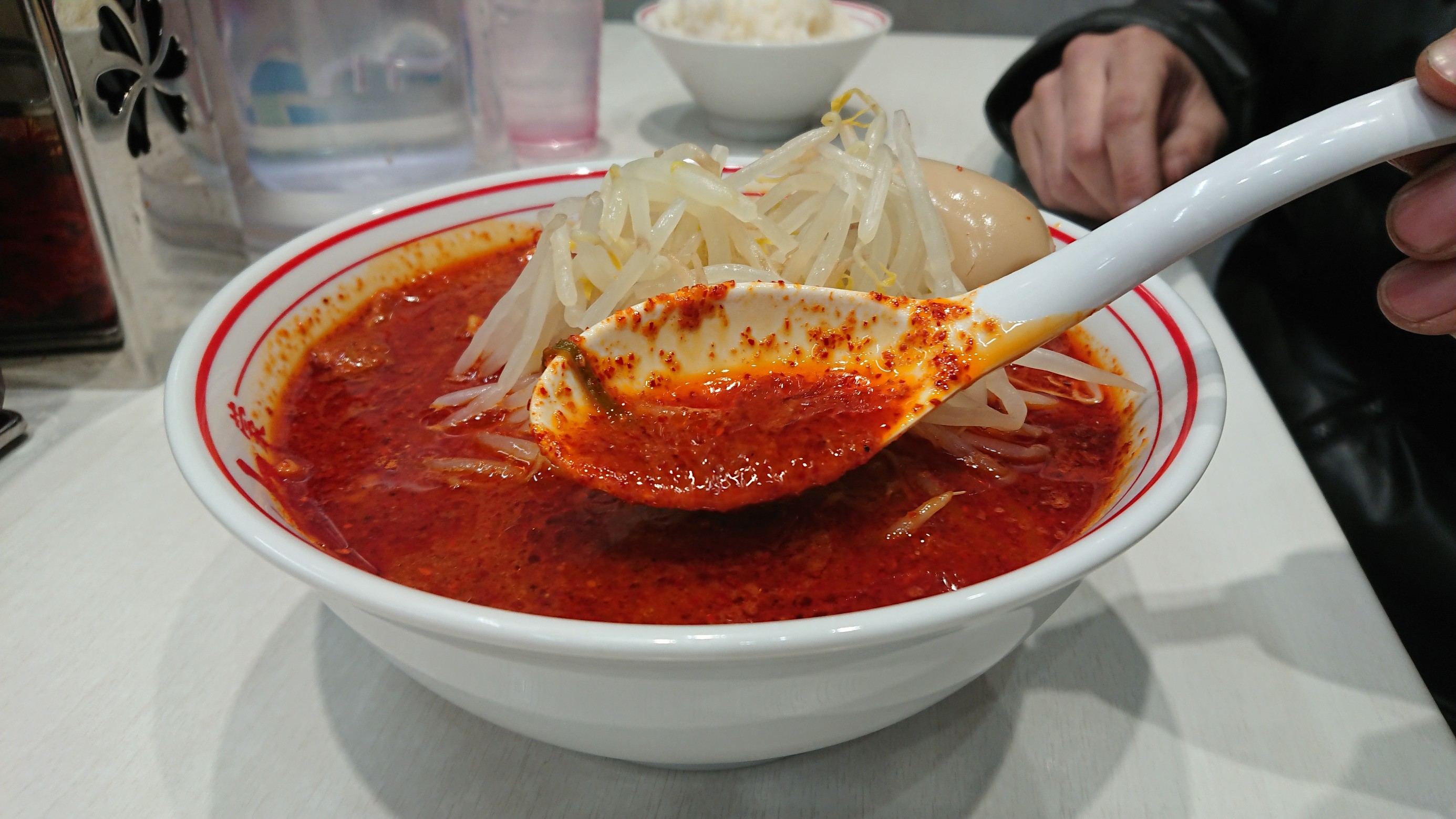 スープじゃないです(・_・) 麺に激辛味噌が乗ってるだけです。