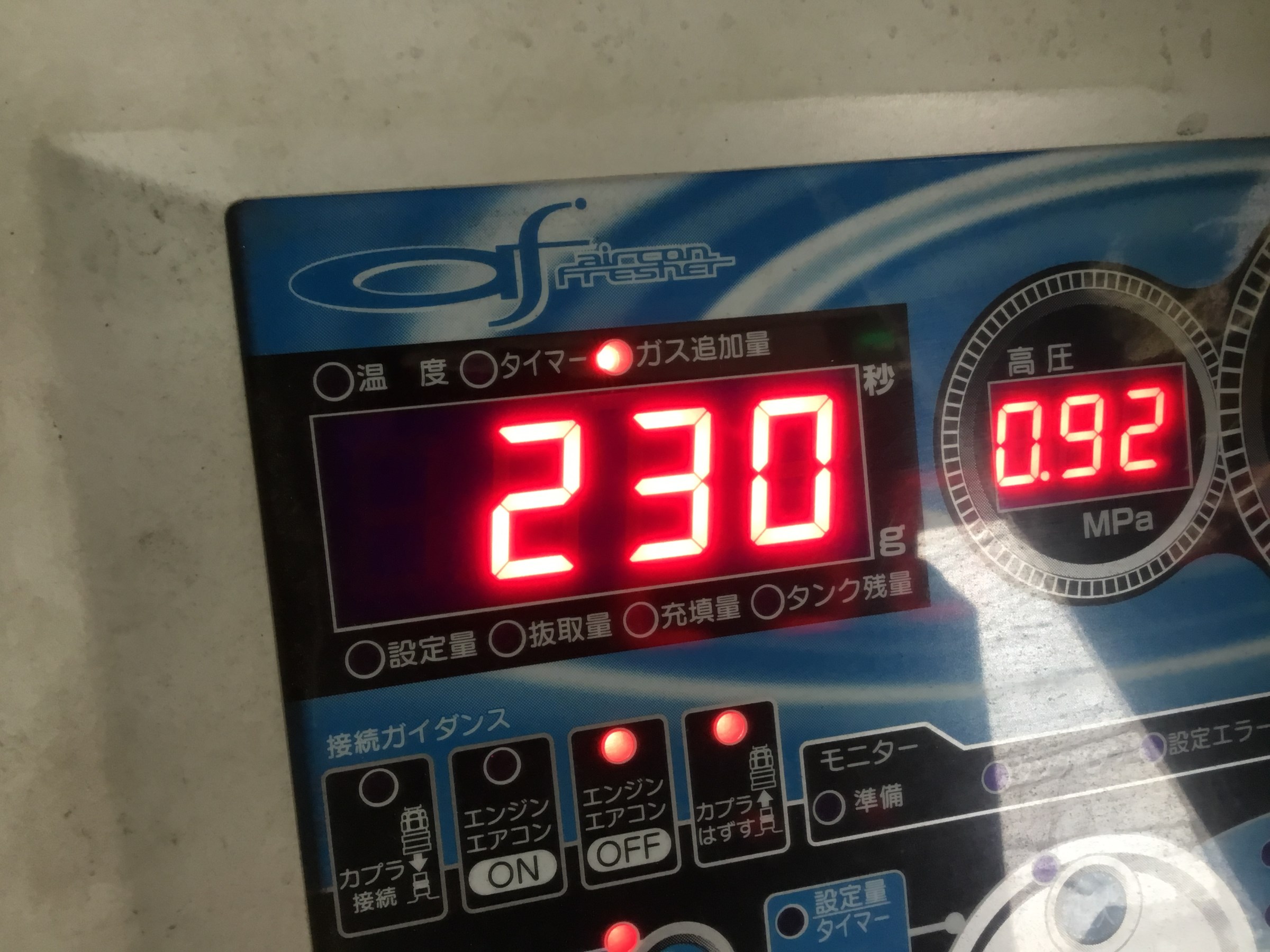 クリーニングが終わって追加ガス充填量を見ると・・・230g!!