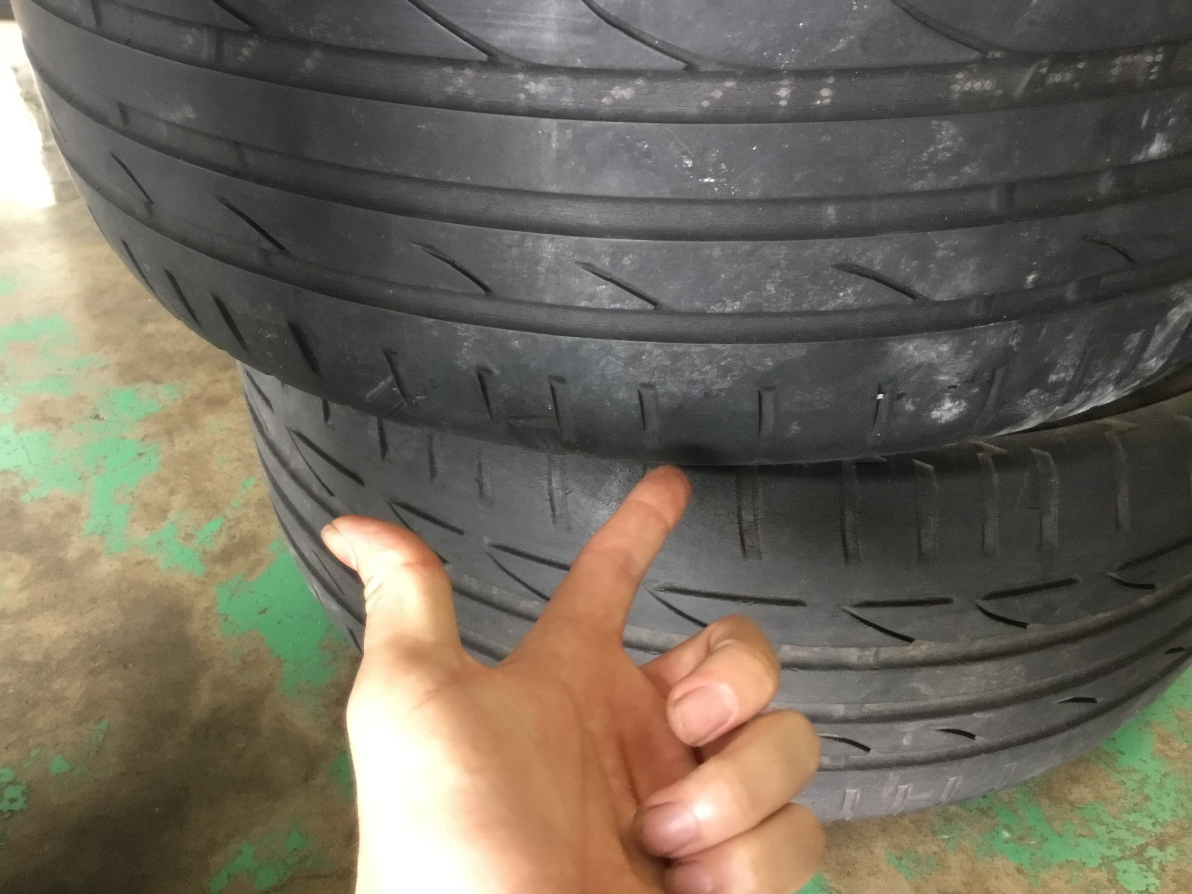 今まで使用されていたタイヤは内側の磨耗が激しくて溝がツルツルになっています(・_・;)
