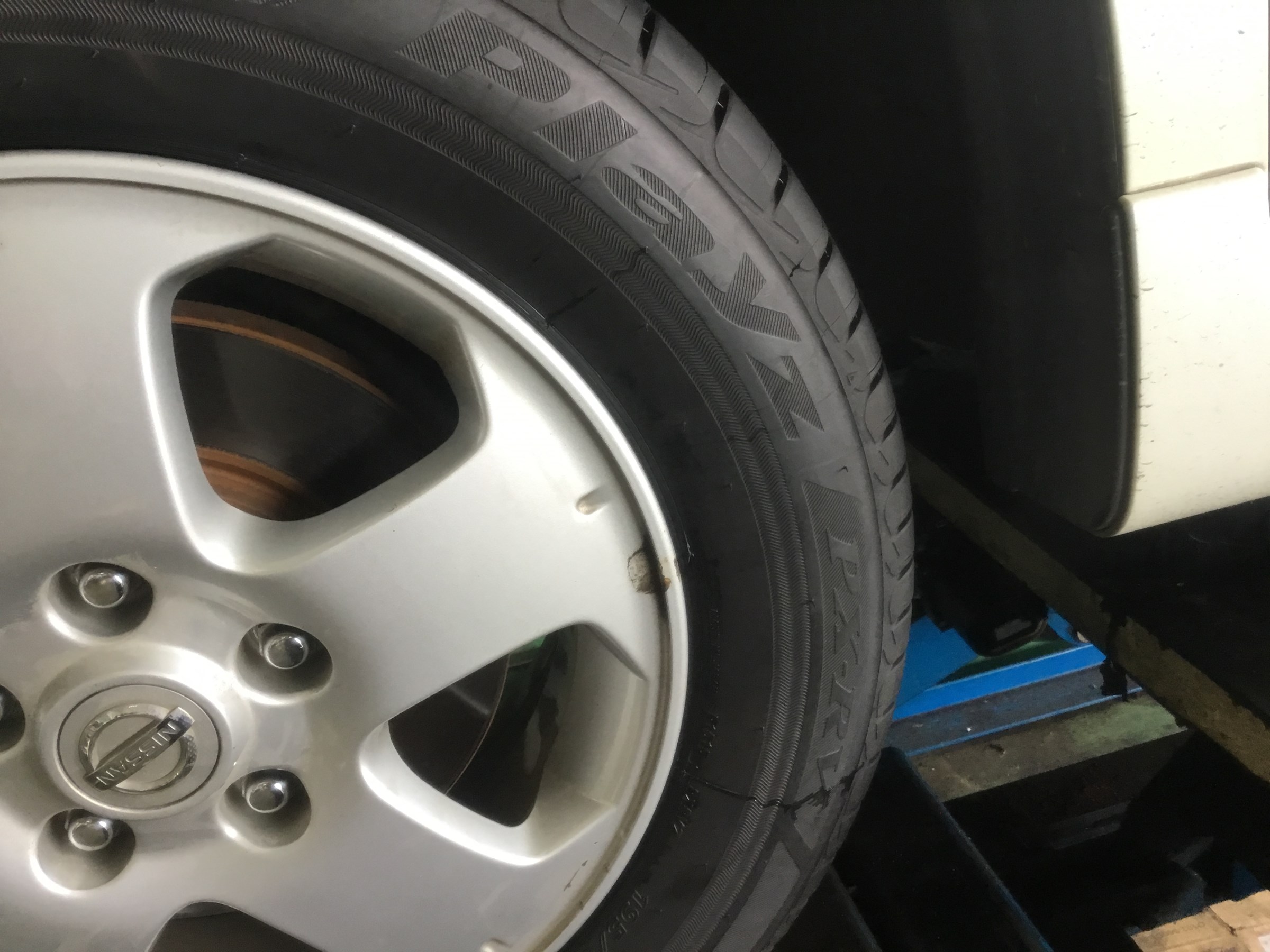 2011年製造のタイヤなので、ゴムの劣化でショルダー部分に小さいヒビが入っているのが見受けられます(・_・;)
