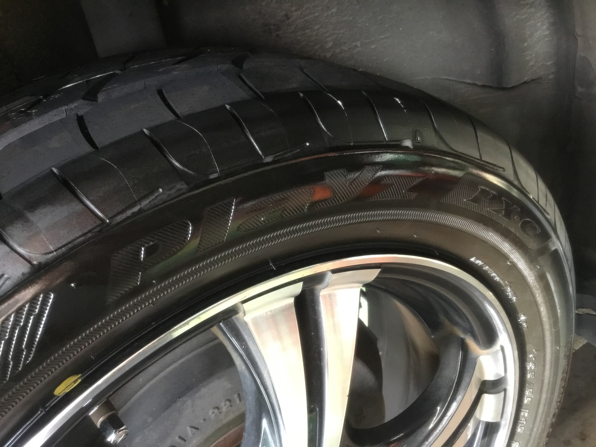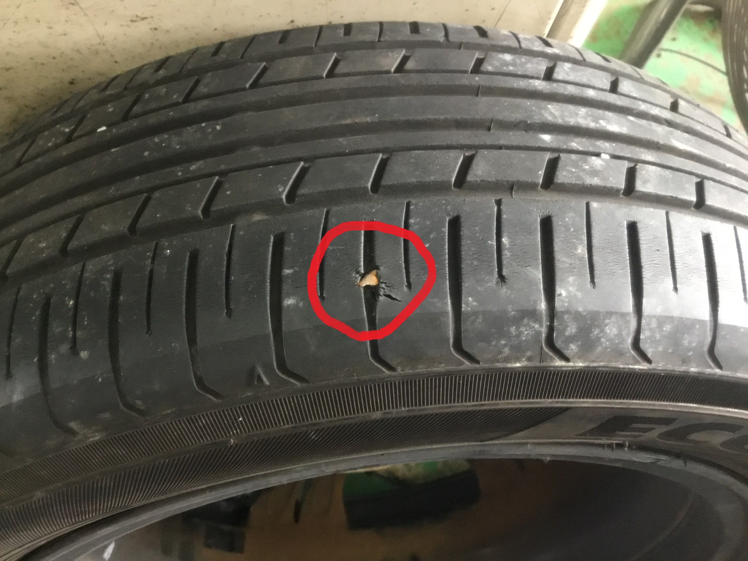 内面修理するには端っこすぎて修理が難しいのと、他のタイヤもヒビ割れ&ミゾが極少だったので4本交換をオススメさせていただきました!