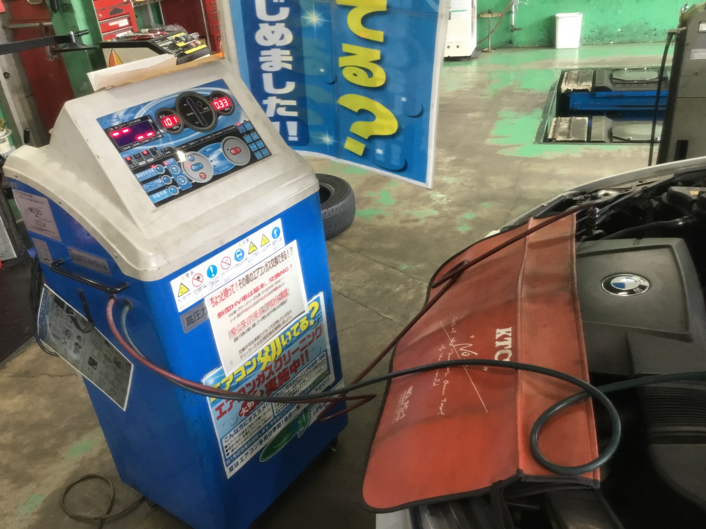 E90型BMW 3シリーズ、エアコンガスクリーニング&パワーエアコンプラス!