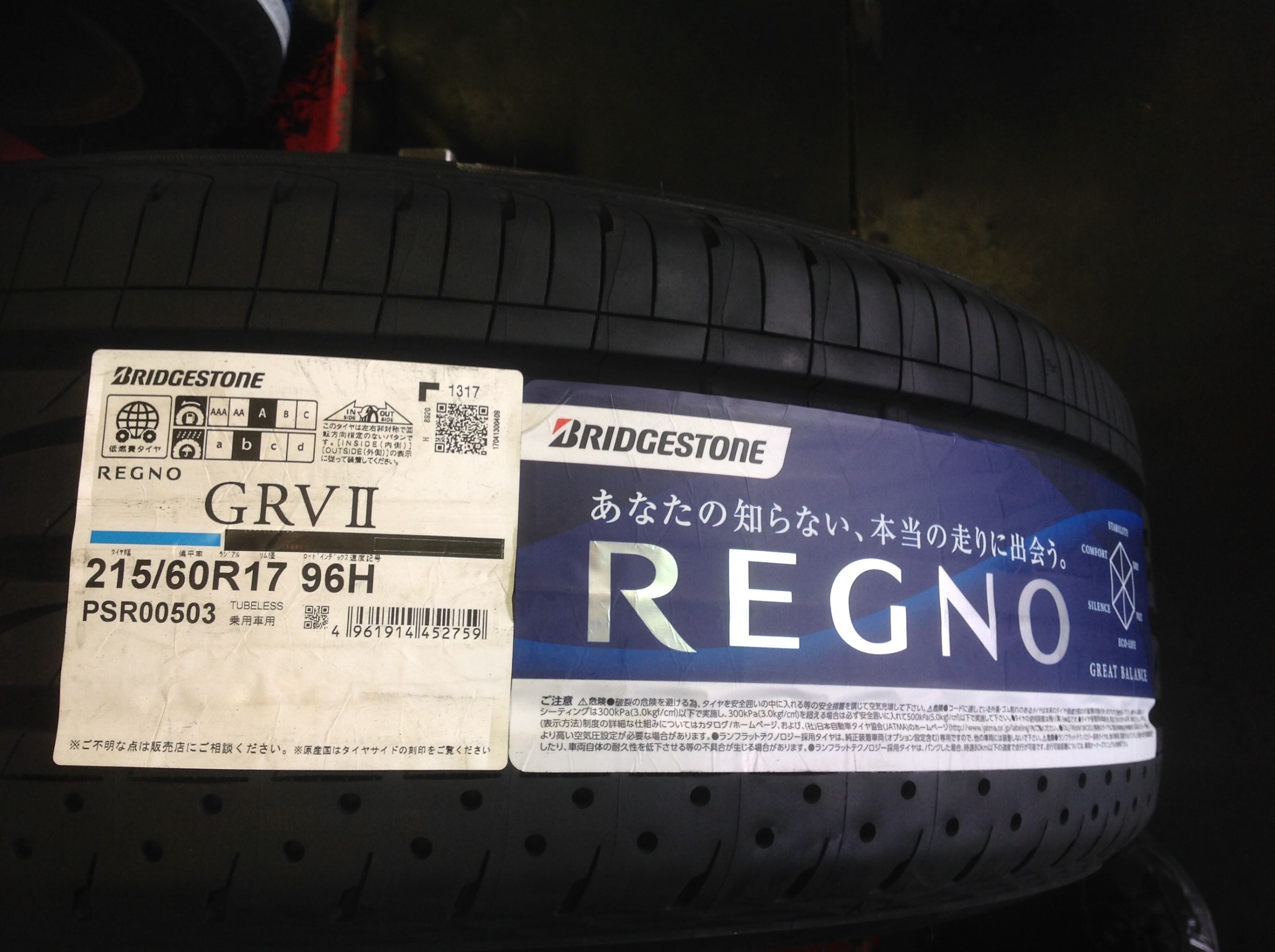 今までREGNO GRVを使用していただいたため、交換タイヤは進化型のREGNO GRV II!!d(´ω`*)