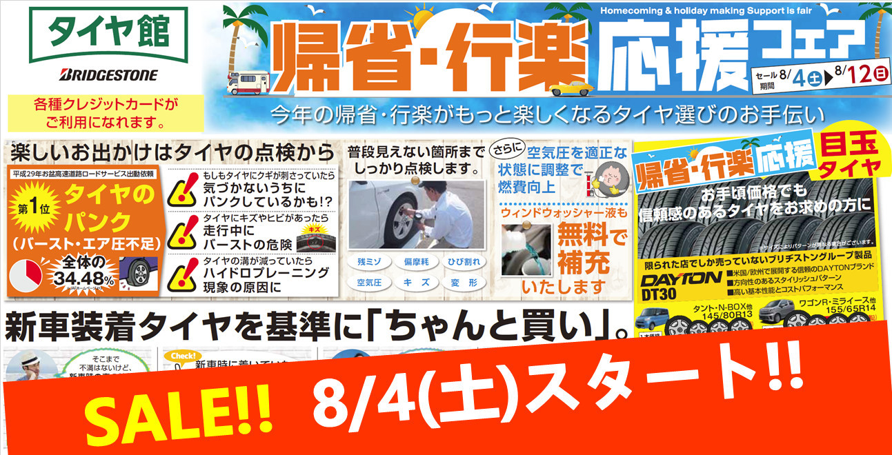 8/4(土)より!!セールイベント【帰省・行楽♪ 応援フェア】スタートとなります!!d(・∀・○)