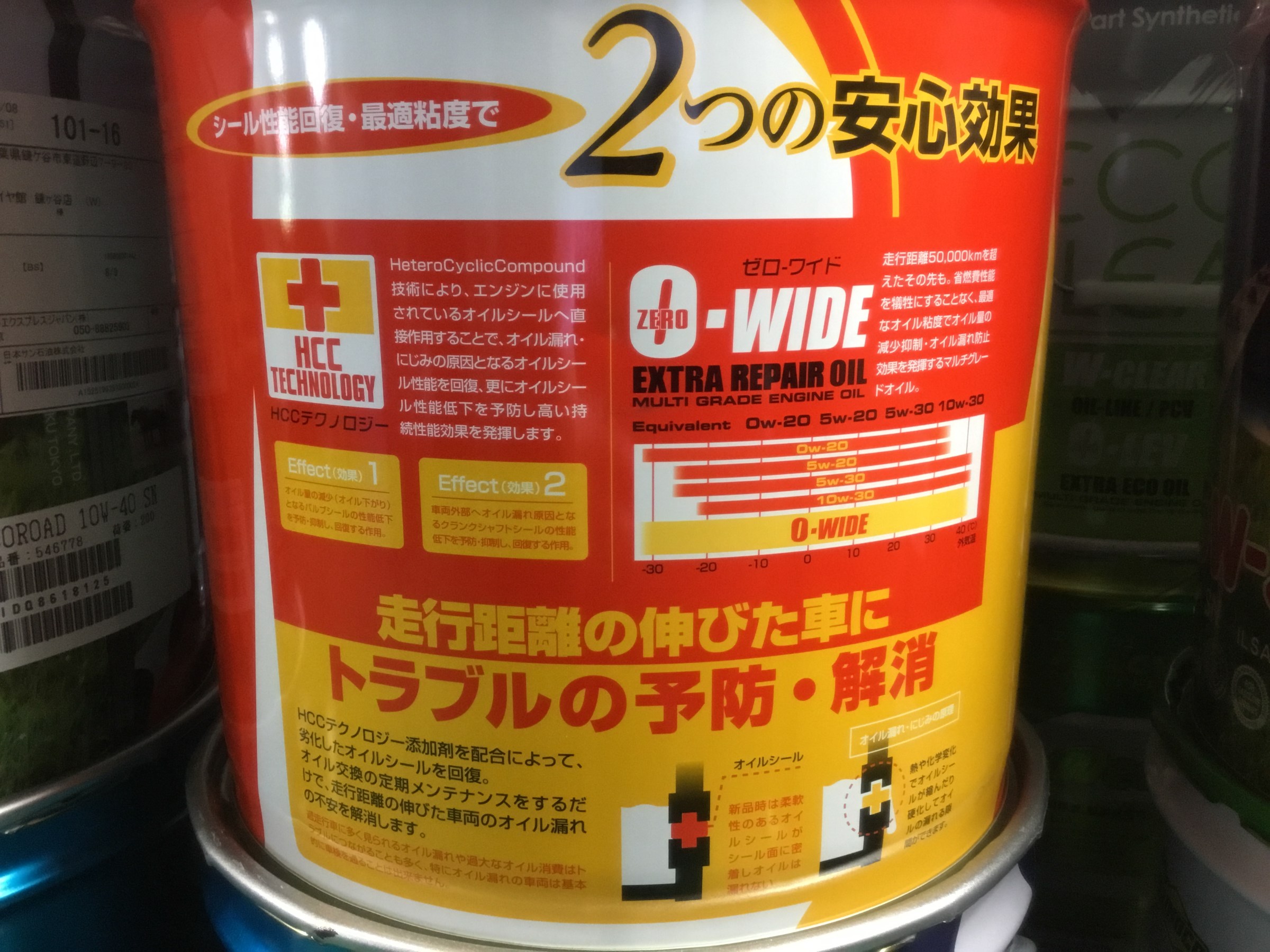0w-20,5w-20,5w-30,10w-30の粘度に対応する0-WIDEのマルチグレードでして、エンジンのゴムシールの劣化によるオイル滲みや漏れを防止してくれる成分が入っているオイルです♪