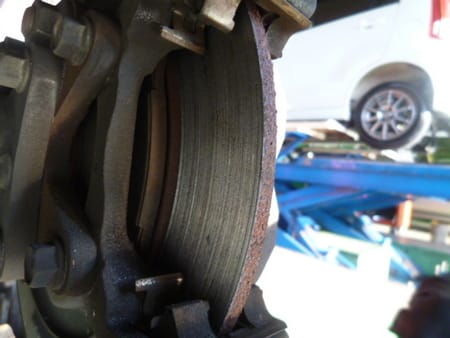 ブレーキパッドの残りが0mmどころか-1mmぐらいまで減っています・・・!