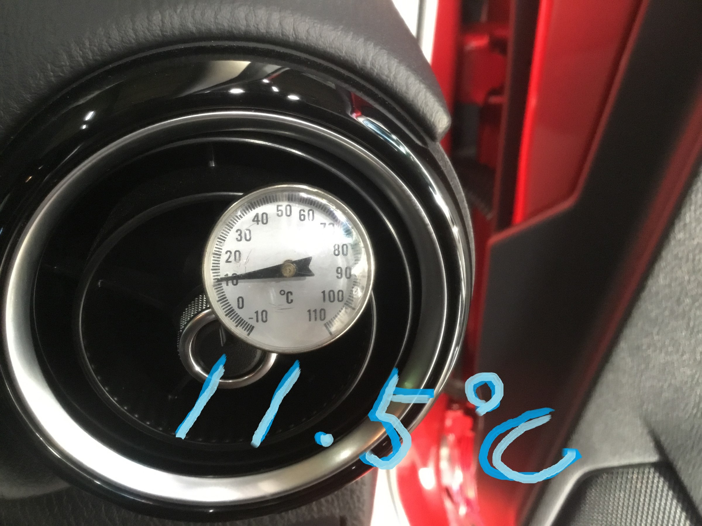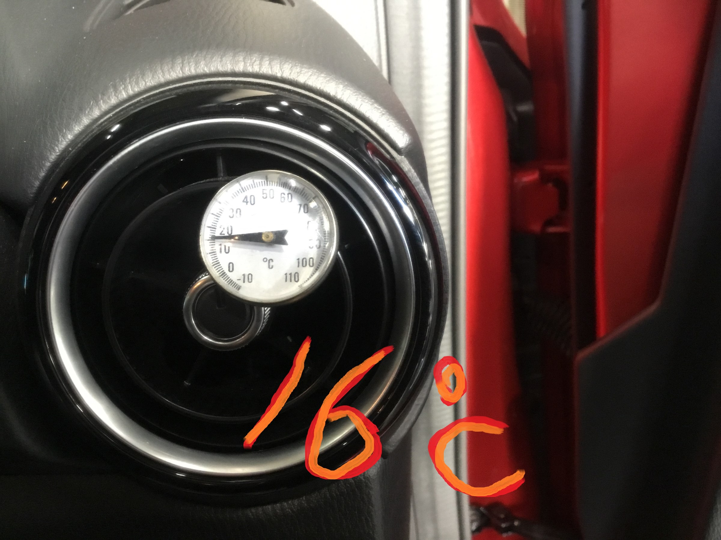 現状のエアコンの風の温度は最低温度・最大風量で16度!!