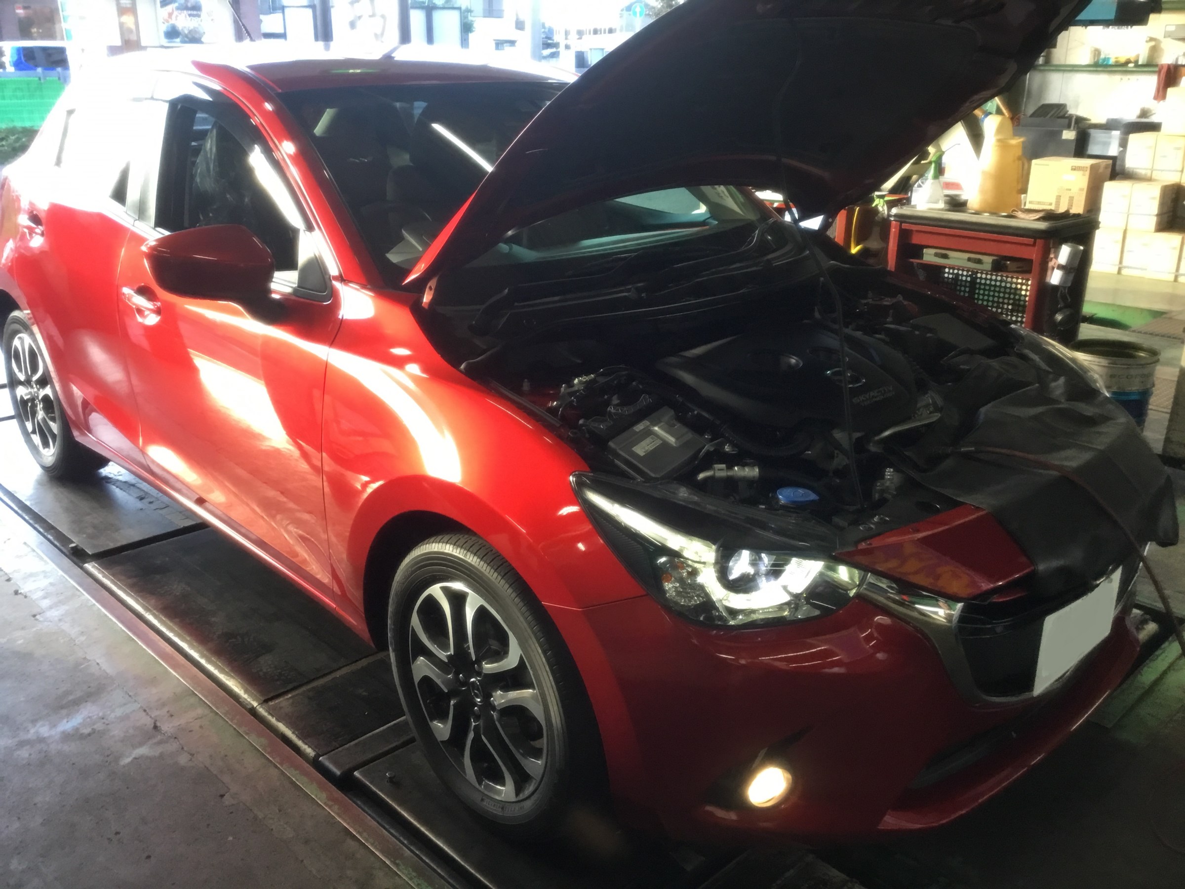 残暑の残る今日この頃、現行デミオにエアコンガスクリーニング&パワーエアコンプラスを施工させていただきました!!∩^ω^∩