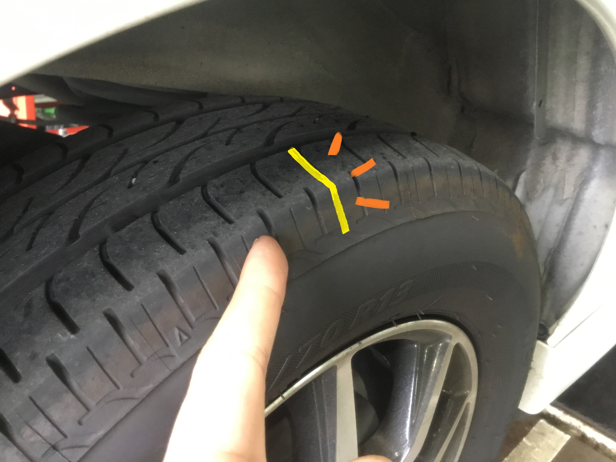 カーブを曲がる際に踏ん張るタイヤの外側が、丸く摩耗しております(´д`;)