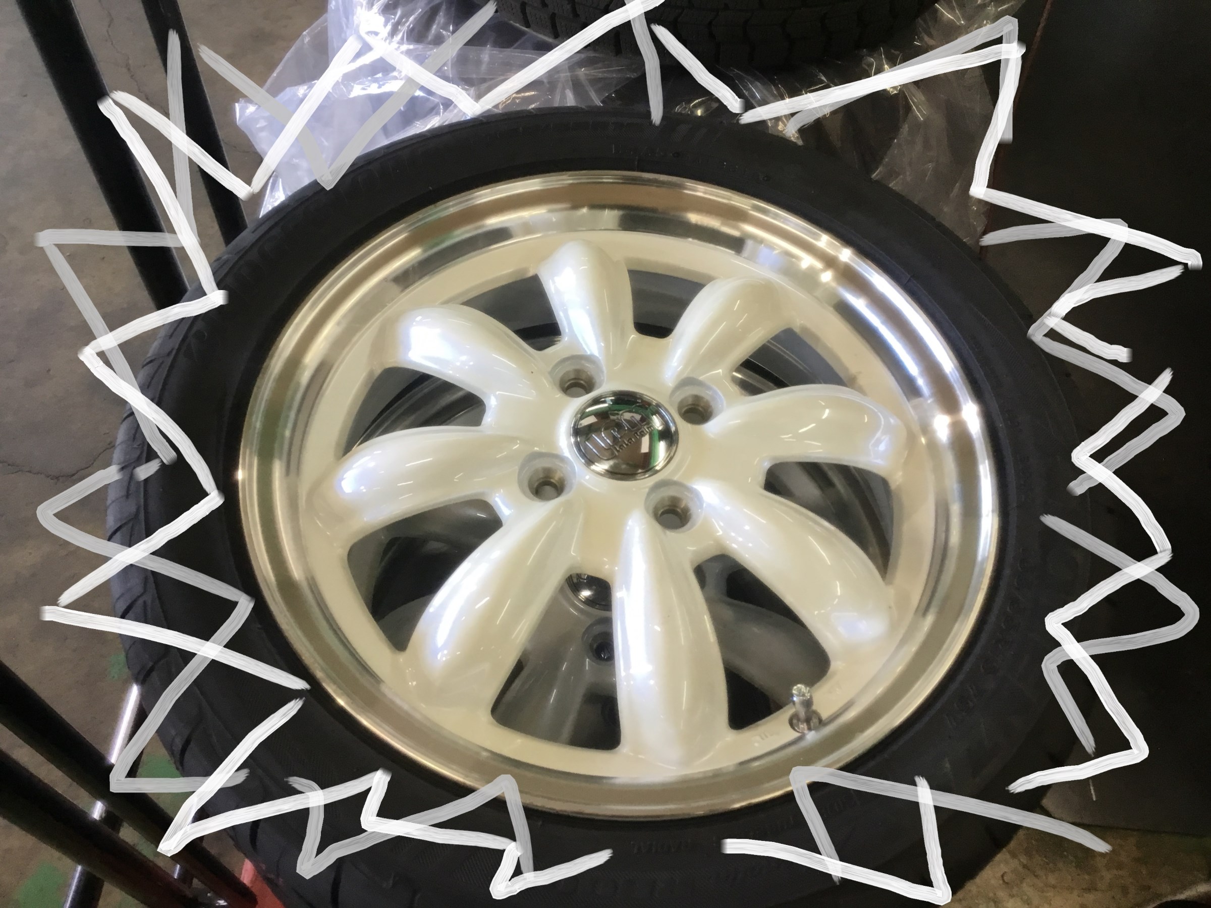 現状でも社外品のブラックポリッシュ系アルミホイールを装着していてオシャレ!(丿^ω^ヽ)しかし今回は更にオシャレに進化します!
