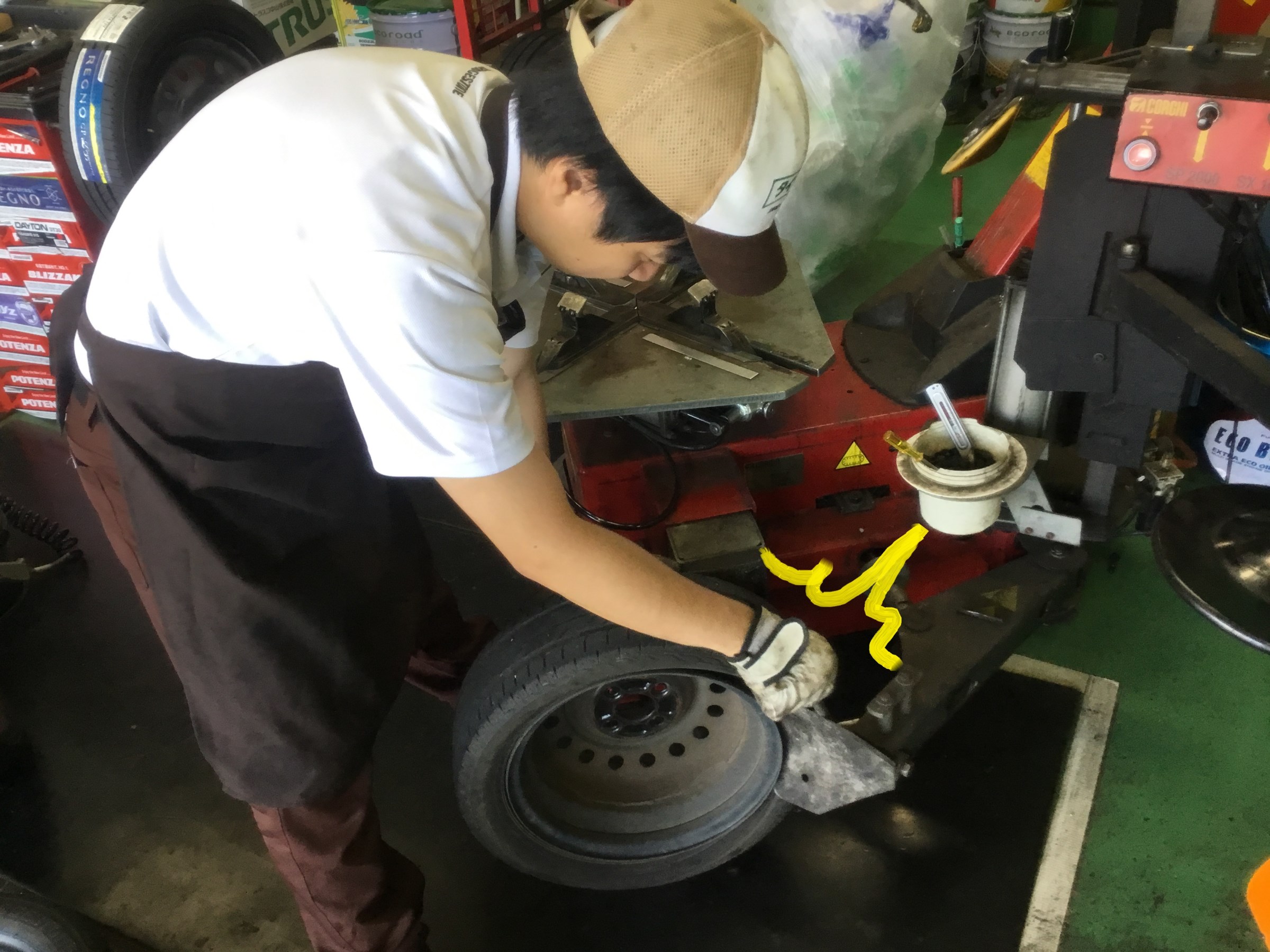 古いタイヤを綺麗に外して、しっかりと掃除してから新しいタイヤを組み付けます♪ヾ(ω` )/