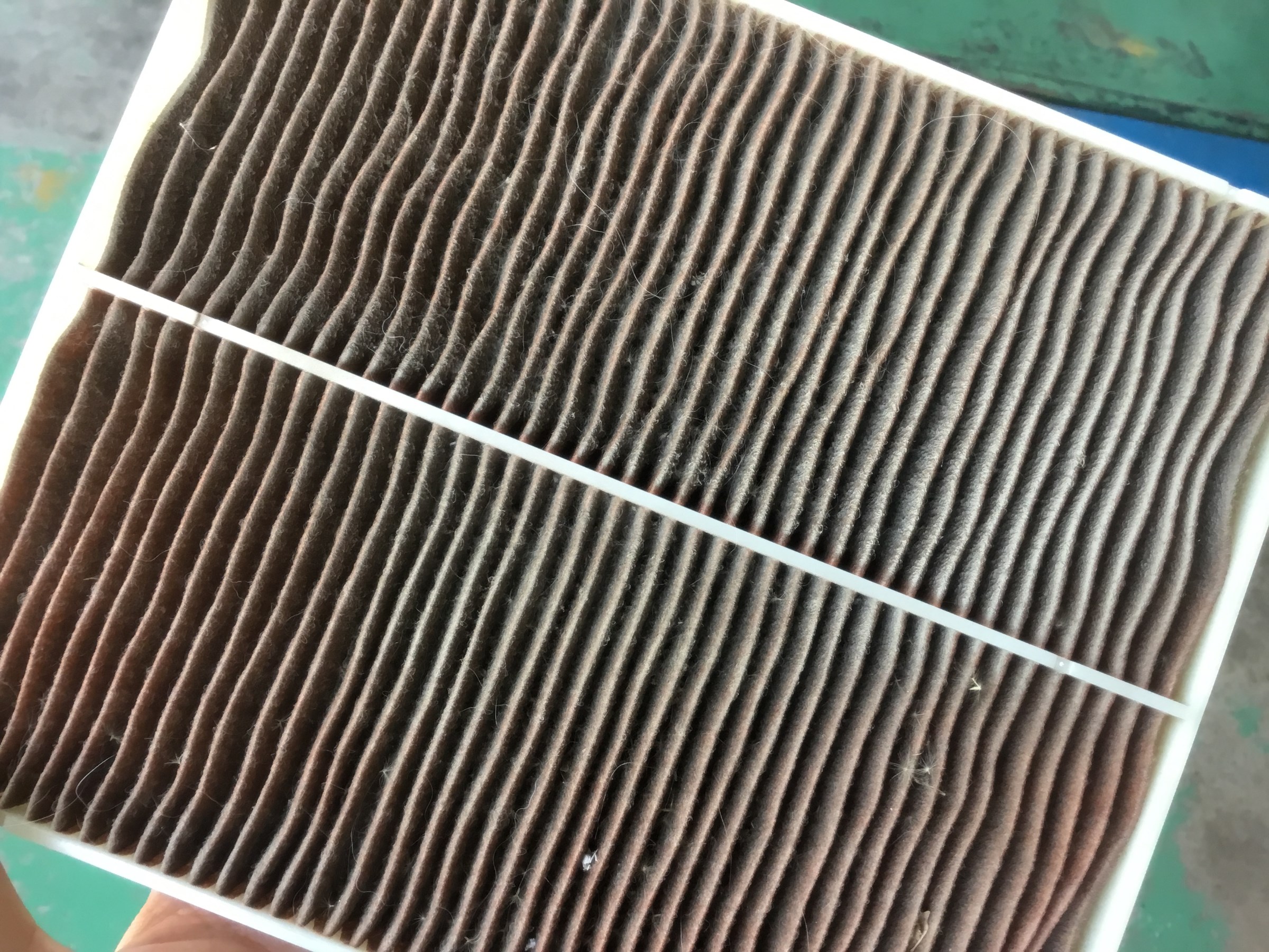 おっきいわんちゃんを乗せて走ることが多いということで、わんちゃんの毛だらけ&ホコリだらけになってしまっていたエアコンフィルター!