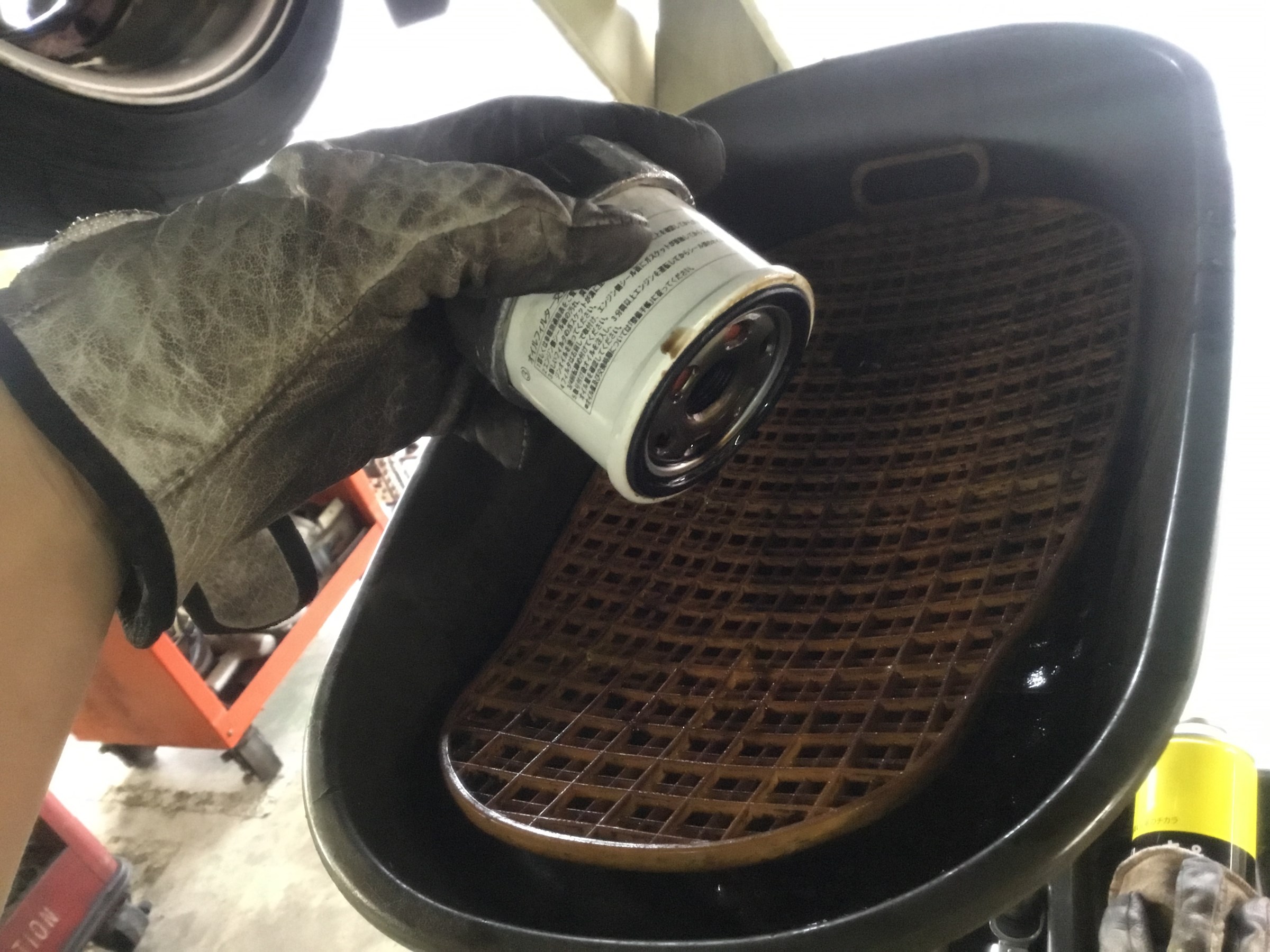 折角の愛車を使っての実験なので、オイルフィルターを外してフィルター内部の廃油もしっかり抜いてから一回戻します!