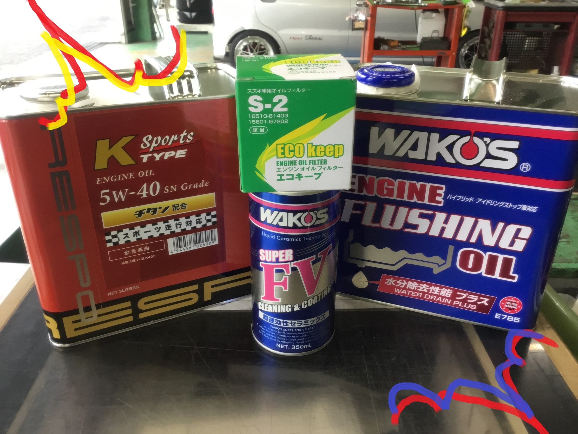 左のオイルは自分のお気に入りのRESPO K TYPE Sports 5w-40!