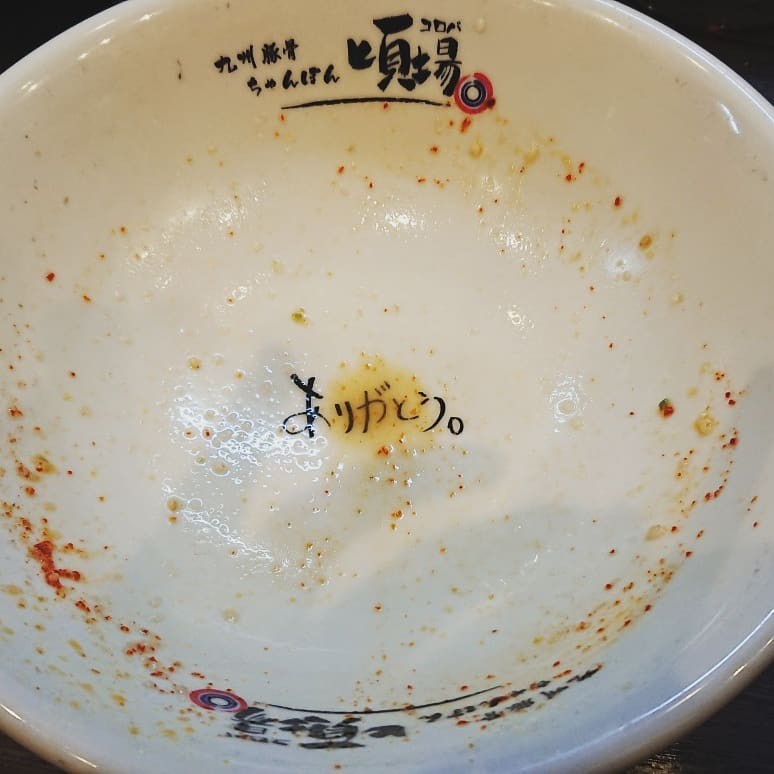 スープまで飲み干したときのこの文字!