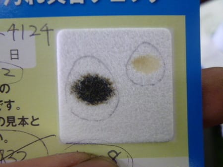 (写真一枚目の左の○が今のオイルを紙に付けたもので、右の○が新油を付けたものです)