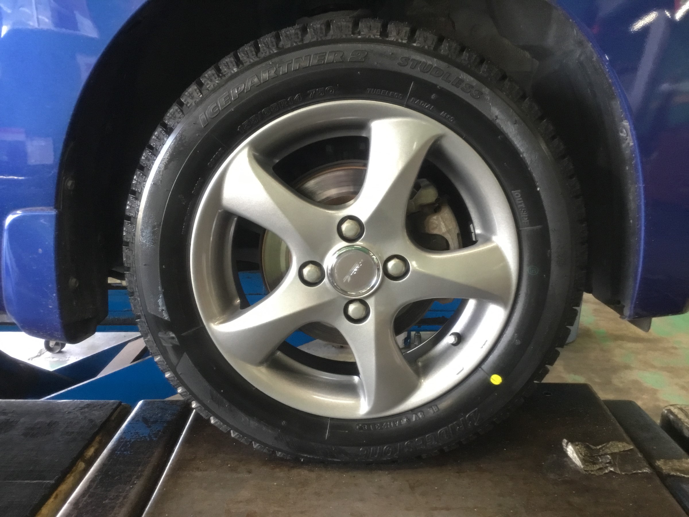 ブリヂストンショップ限定タイヤのアイスパートナー2 155/65R14サイズと、ブリヂストン製アルミホイールのトップランRD5の組み合わせ!!