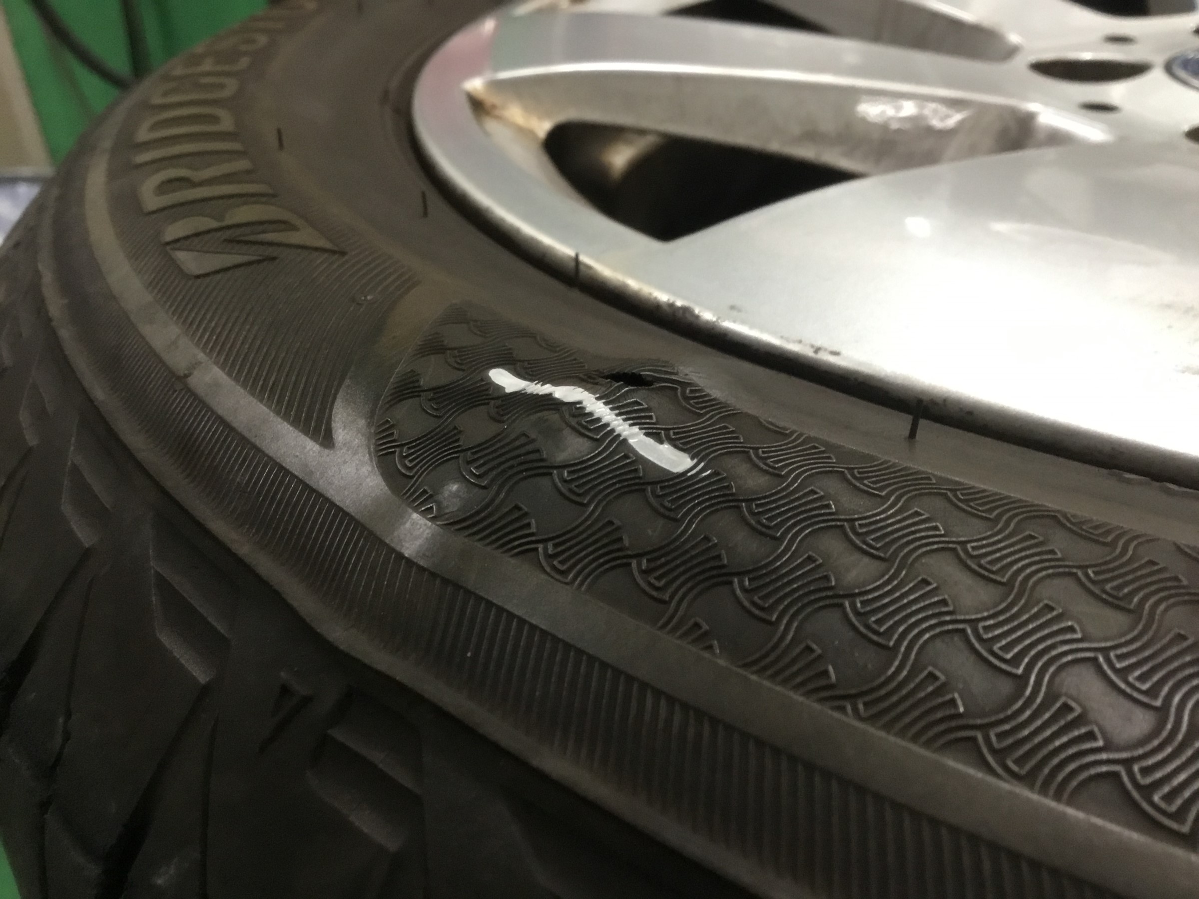 この状態で走行すると大変ですので、もし縁石などにタイヤを当てた記憶のある方はタイヤが膨らんでいないかしっかりチェックを行い、膨らんでいたら早期に交換を行ってくださいっ!!