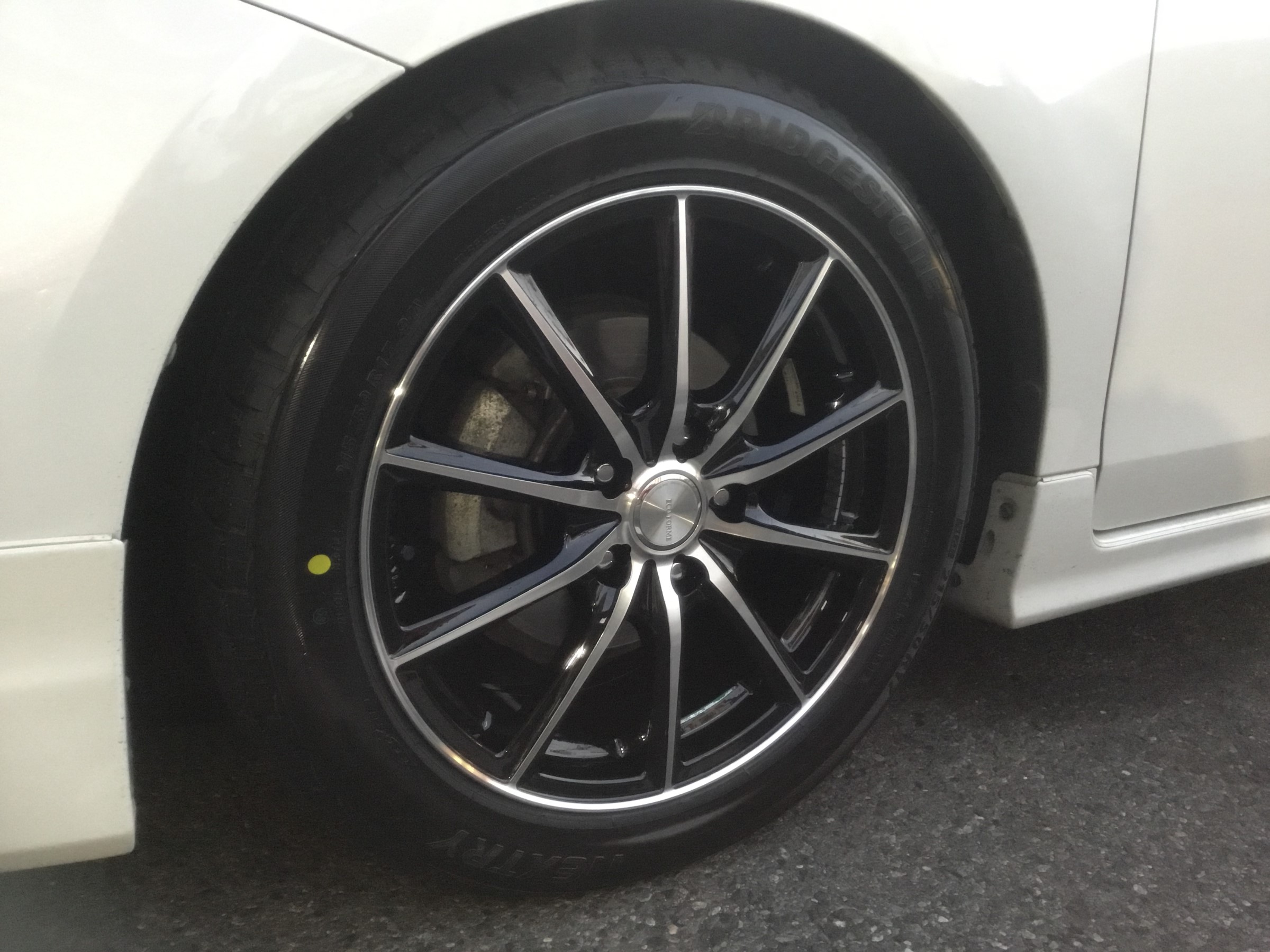 お車を購入したときから19インチの大径ホイールが装着されていたらしいのですが、タイヤの扁平が薄いので路面の段差の衝撃でアルミホイールが歪んでしまっています・・・。