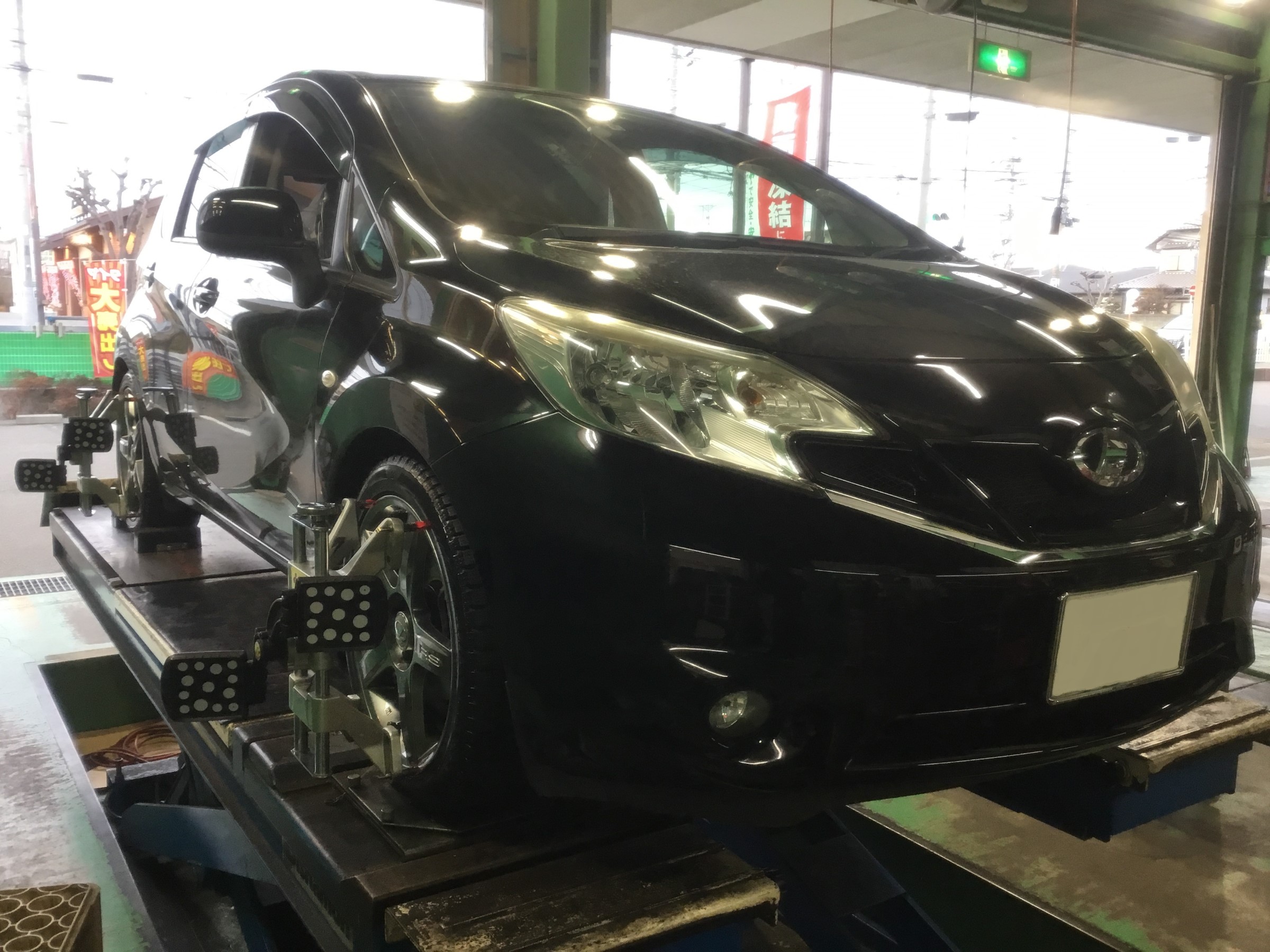 E12型ノート、スタッドレスタイヤ取り付け&アライメント調整!