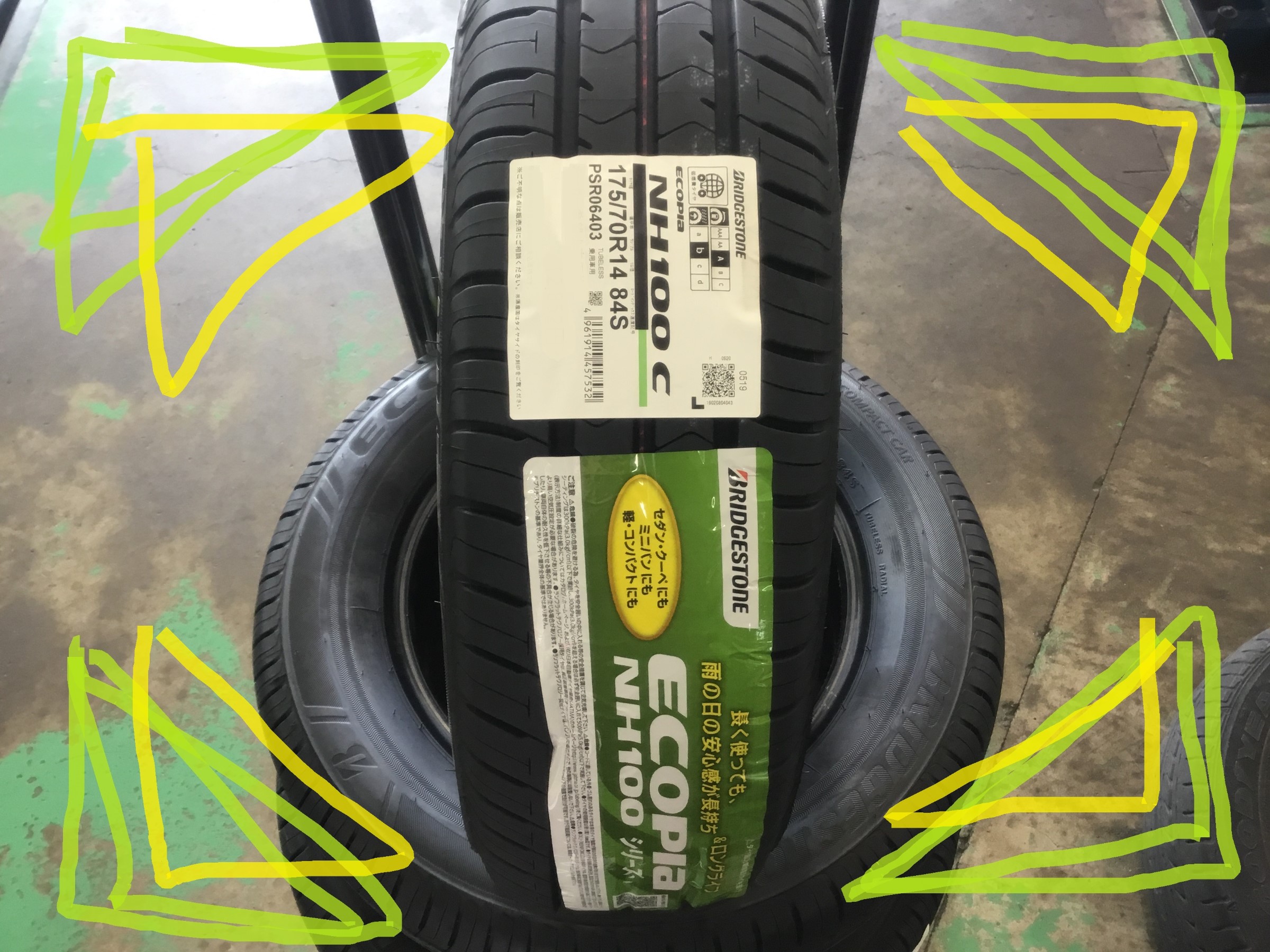 取り付けタイヤは、ブリヂストンのエコピアNH100C!サイズは175/70R14!!