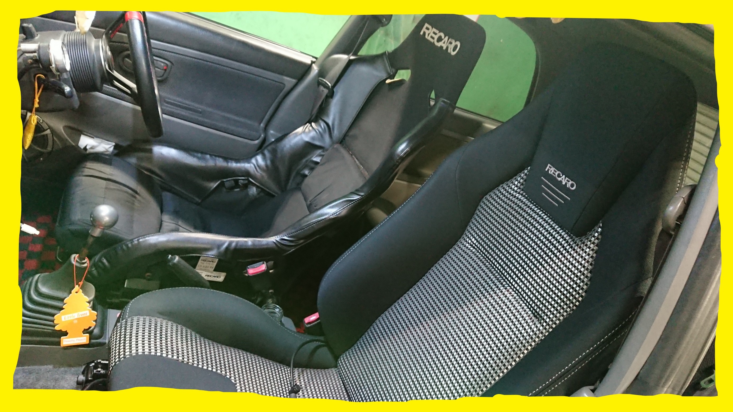 運転席は車を買ってすぐに手持ちのRECAROのフルバケ(SP-G)に交換していたのですが、そうなると助手席もRECAROで揃えたくなるのが車好き特有の病気…(;´Д`)