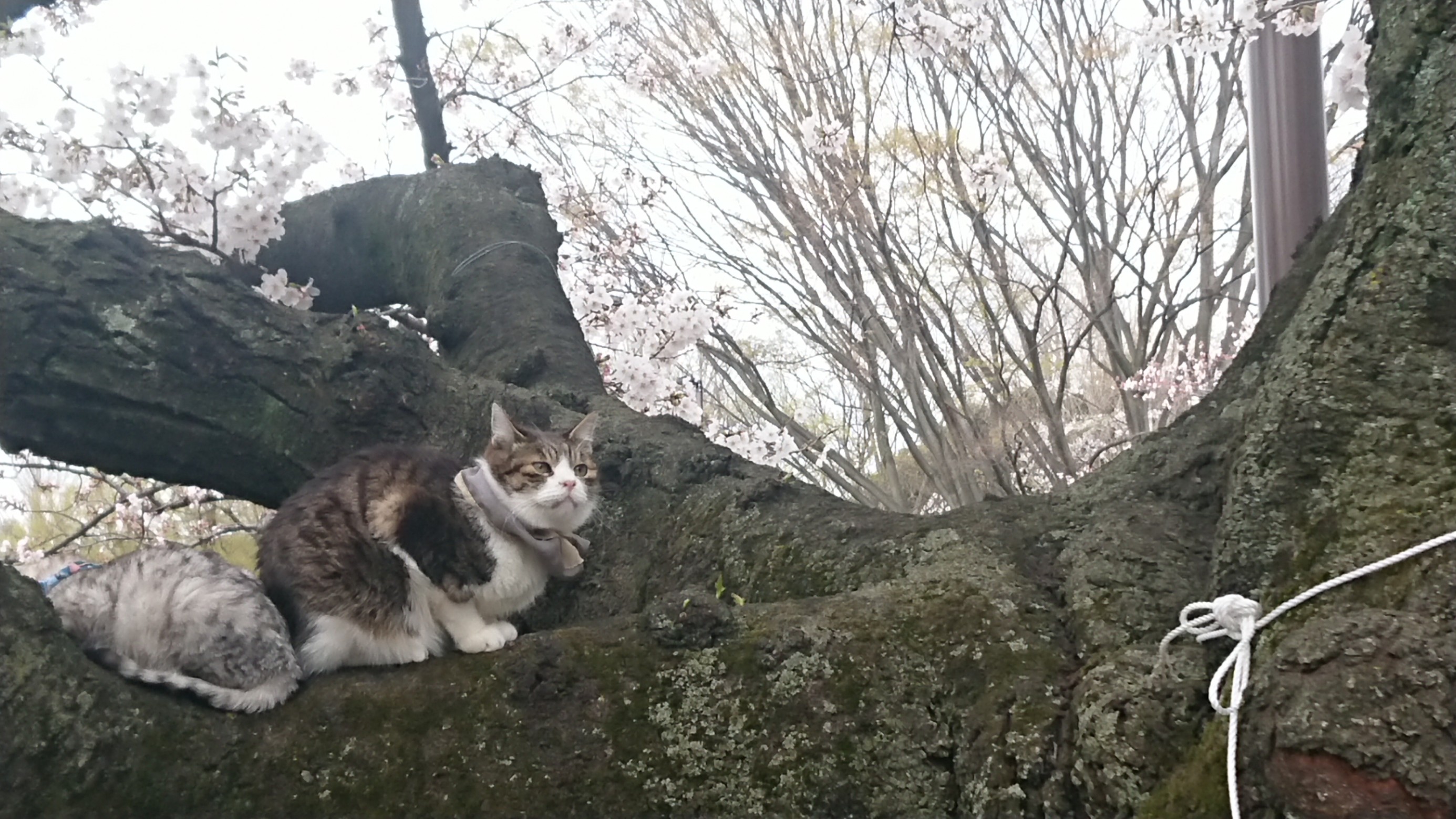 桜の木の上で、ねこさんカップルがお花見デートしてました(*´艸`*)か、かわゆい!!