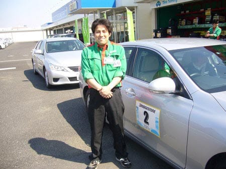 車両はマークXで、汎用品であるエコピアEX10との乗り比べです。