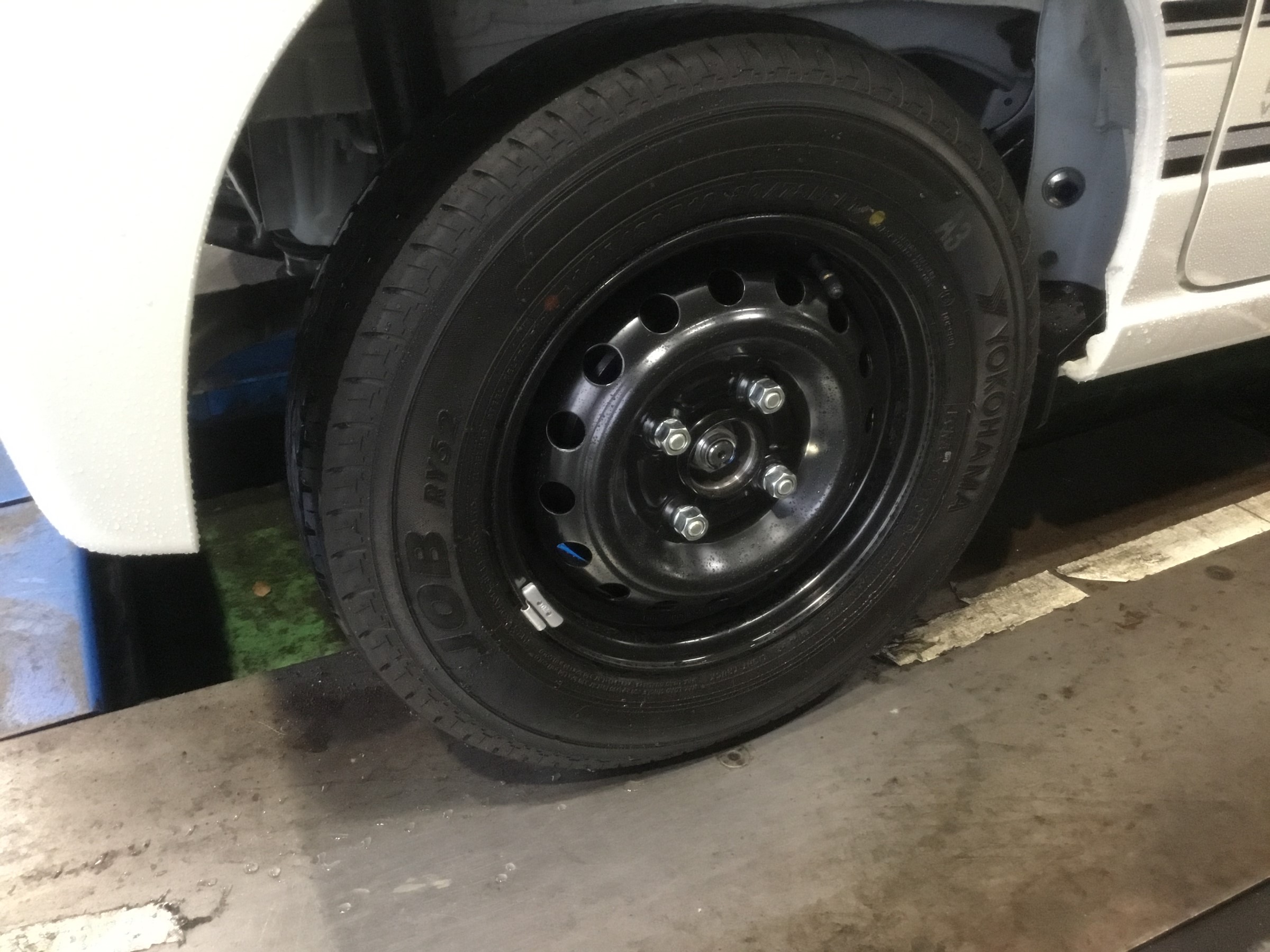 暗くてわかりづらいですが、現状はノーマルのスチールホイールです!