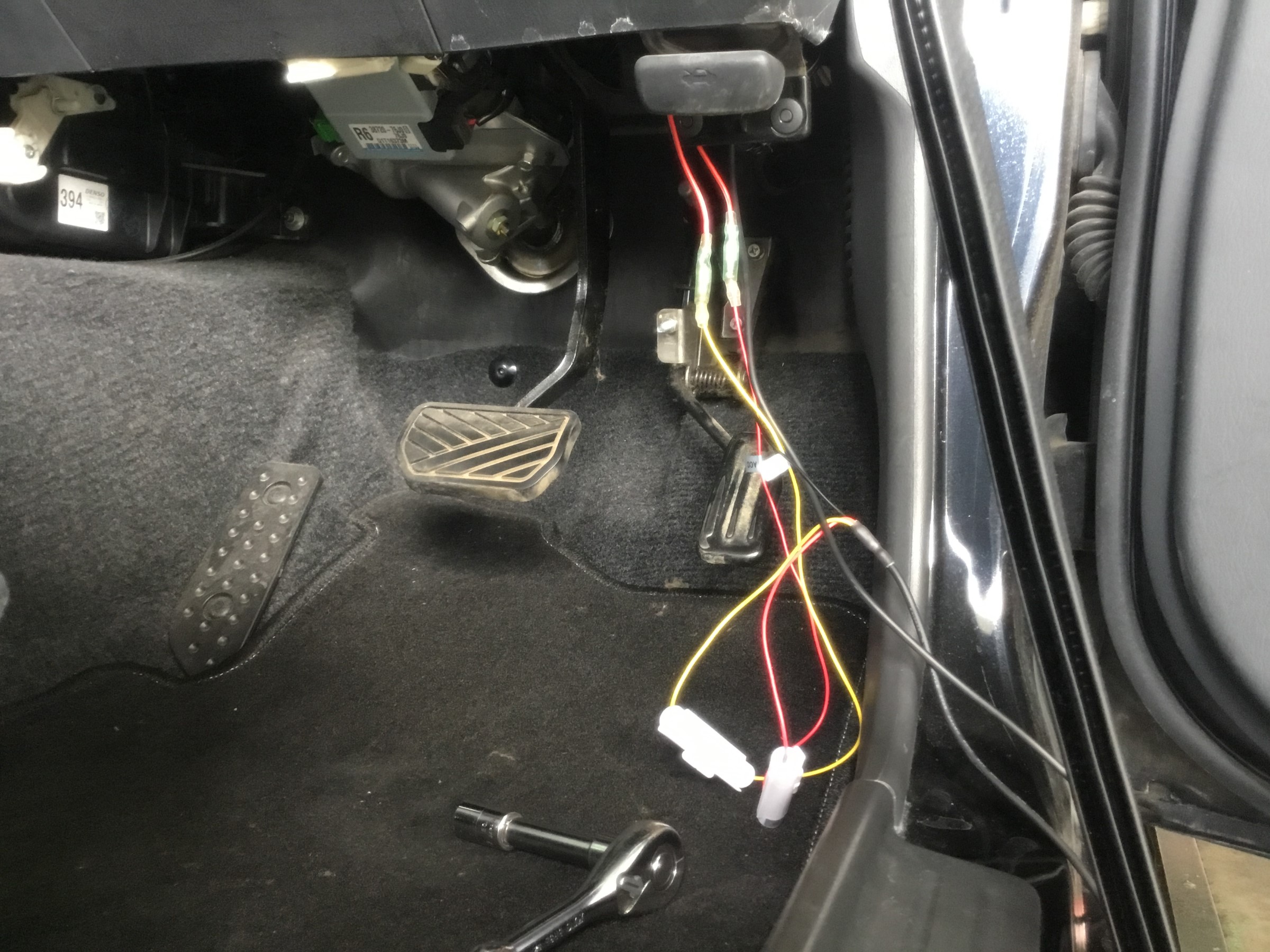 足元のヒューズから電源を取ります( ^ω^ )これで当て逃げされてもバッチリ録画できます!!