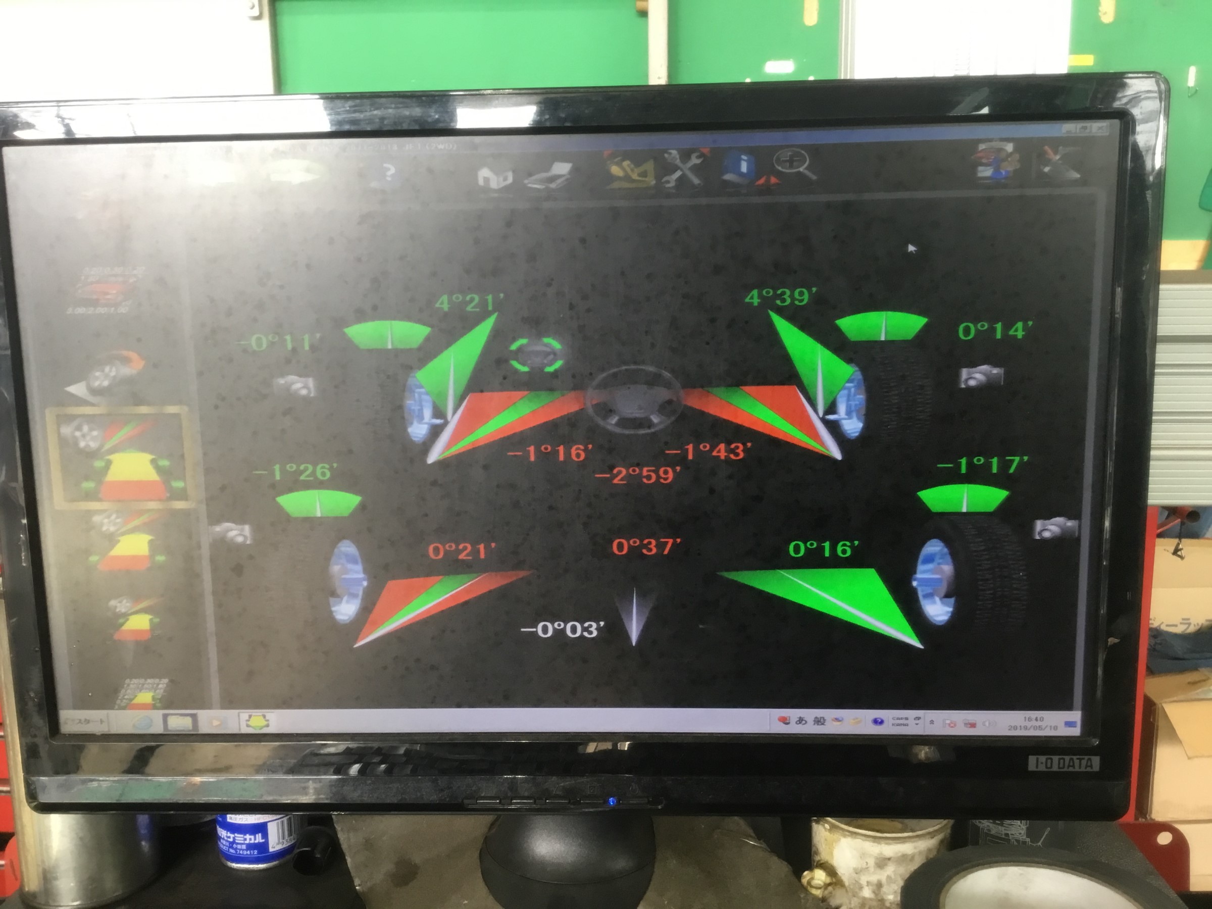 測定してみるとフロントのトーの左右合計値が-2°59′!!