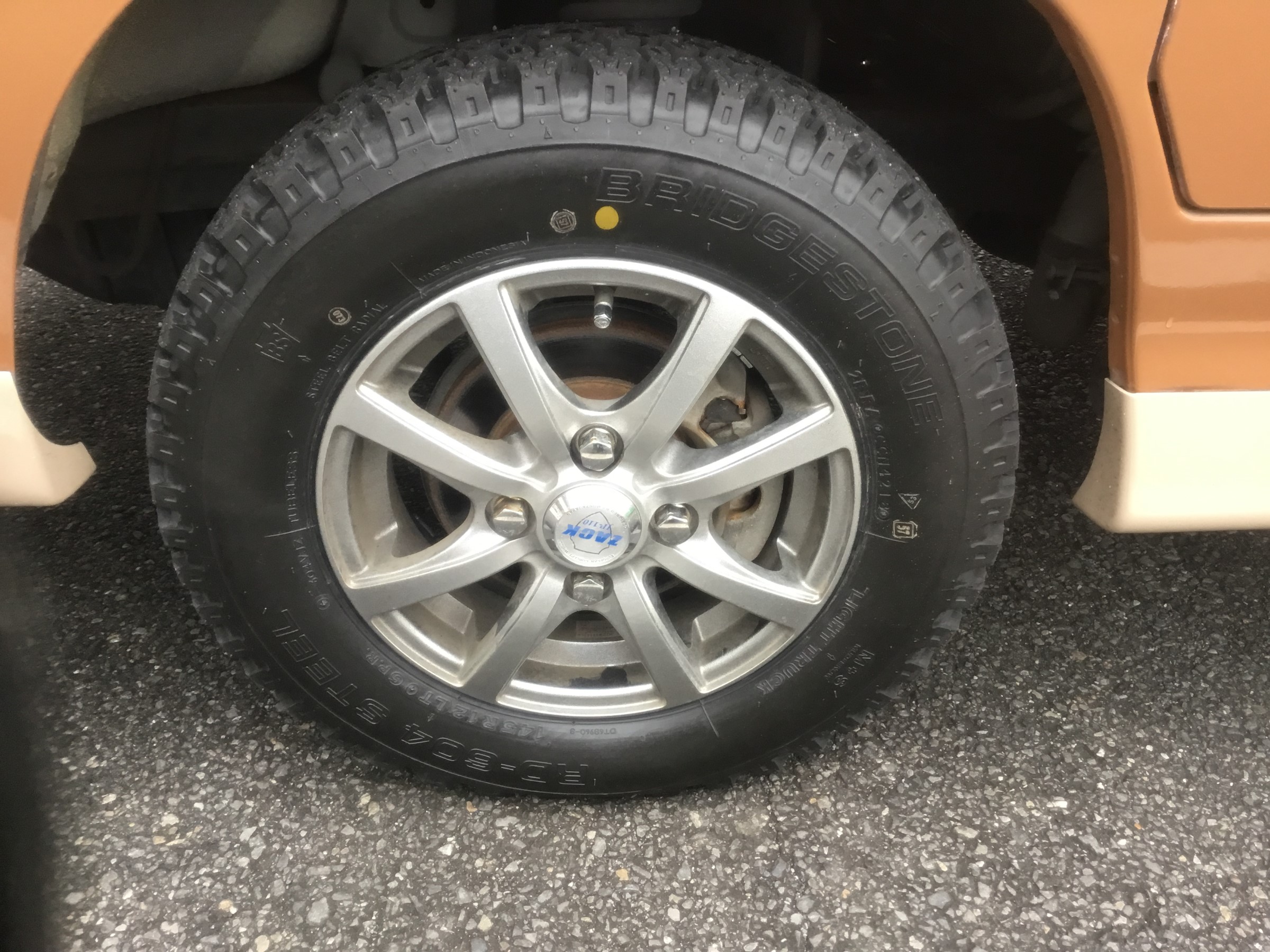装着タイヤは145R12 6PRサイズのブリヂストン604V!!