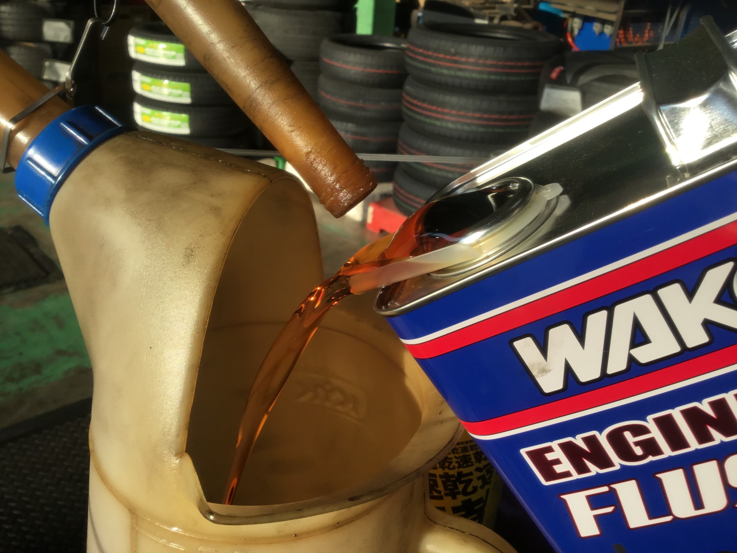 そういった場合は通常のエンジンオイル交換では取り切れない汚れが堆積していることがありますので、オイル交換前にフラッシングオイルでしっかりエンジン内部をすすぎ洗いしてからオイル交換しましょ~!!.+゚ヽ(`・ω・´)ノ.+゚