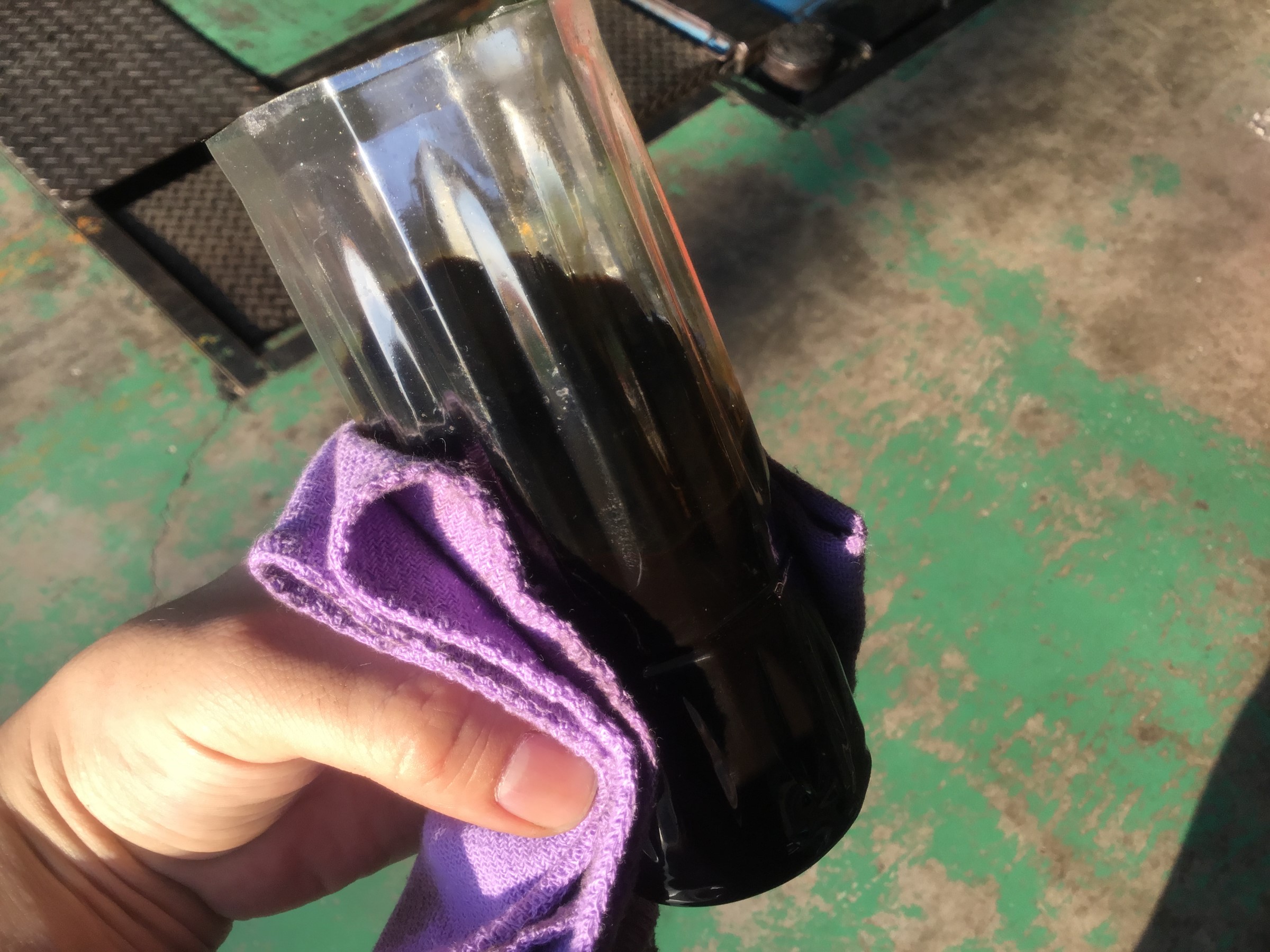 コチラはフラッシング後のオイルをペットボトルに採取した写真!