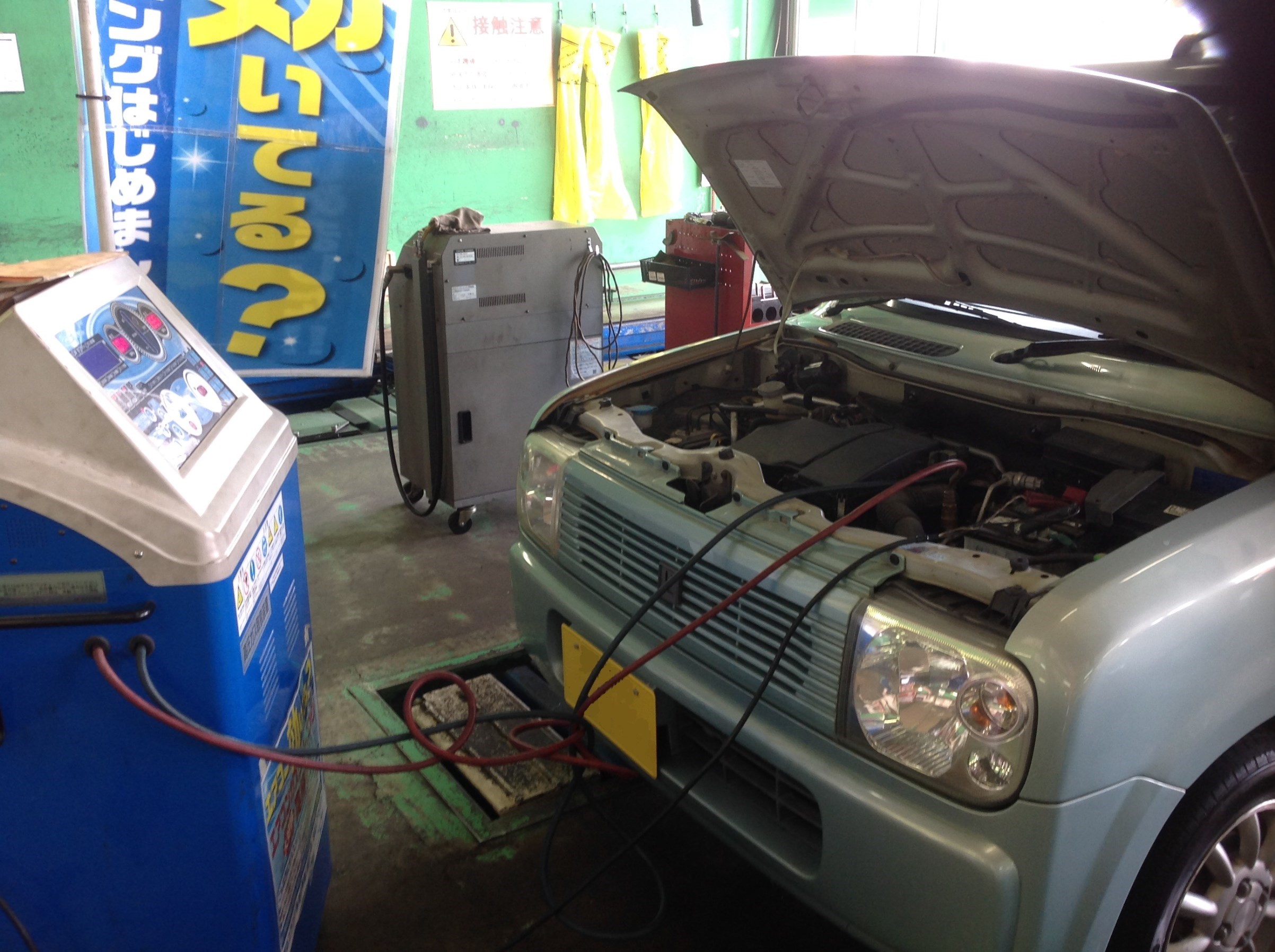 このラパン、エアコンガスは320gが基準値なのですが60gしか入っていませんでした(;^ω^)