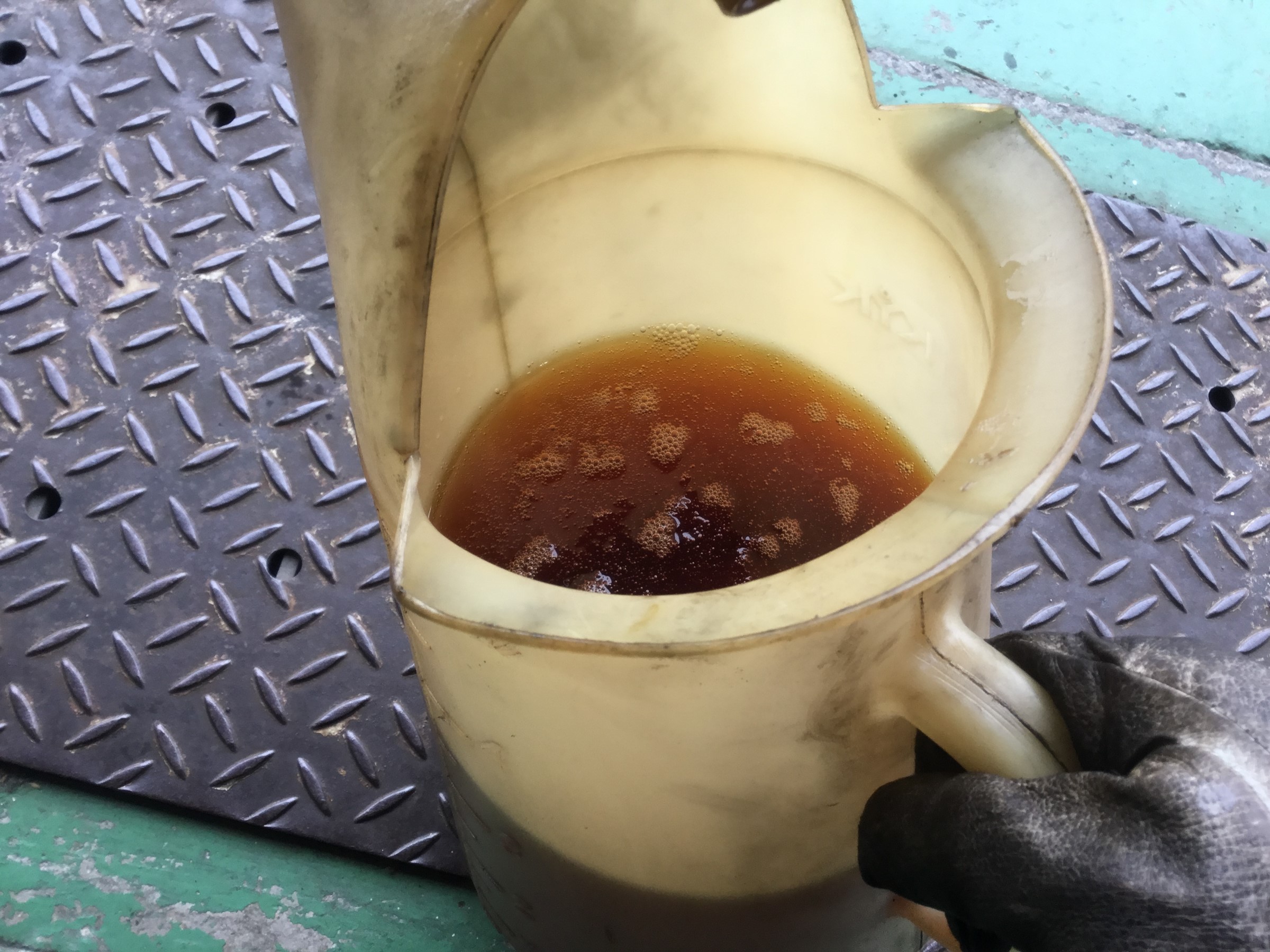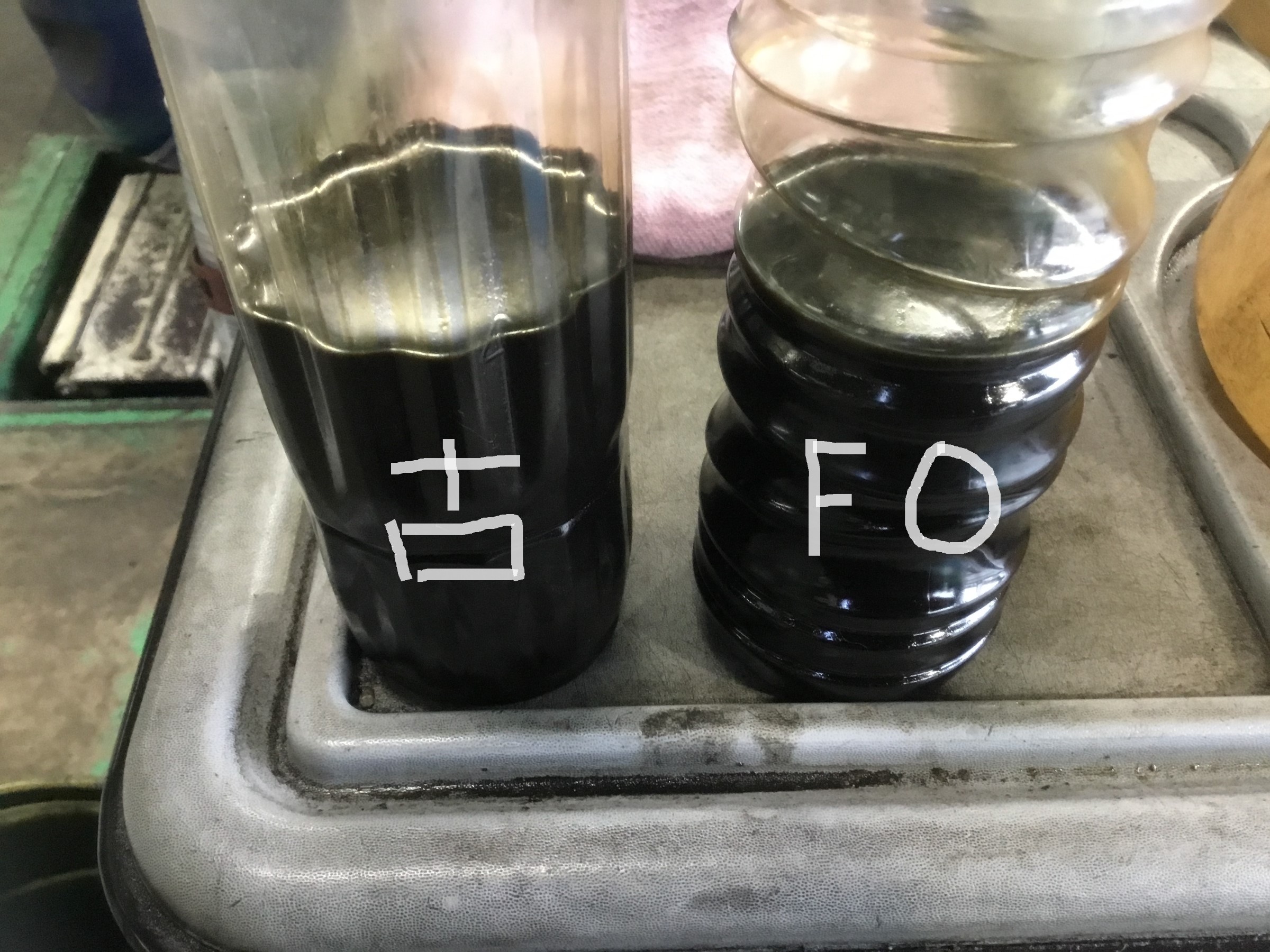 左が最初に入っていたオイルで、右がフラッシング後のオイル!!