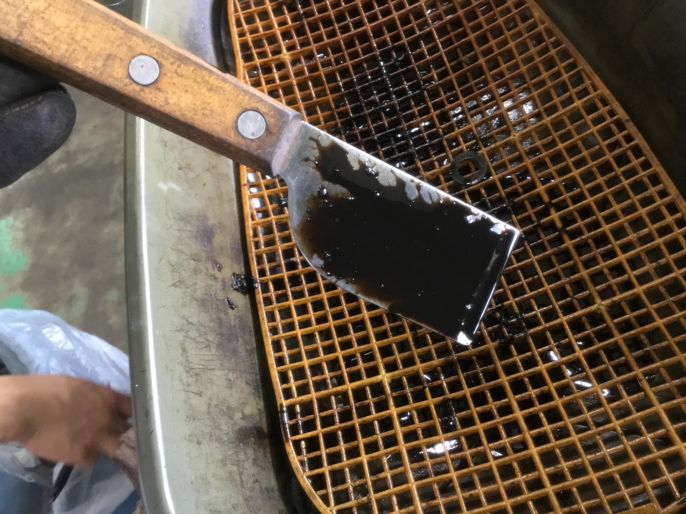 オイルをヘラですくってみると、このようにヘドロ状になった汚れが!