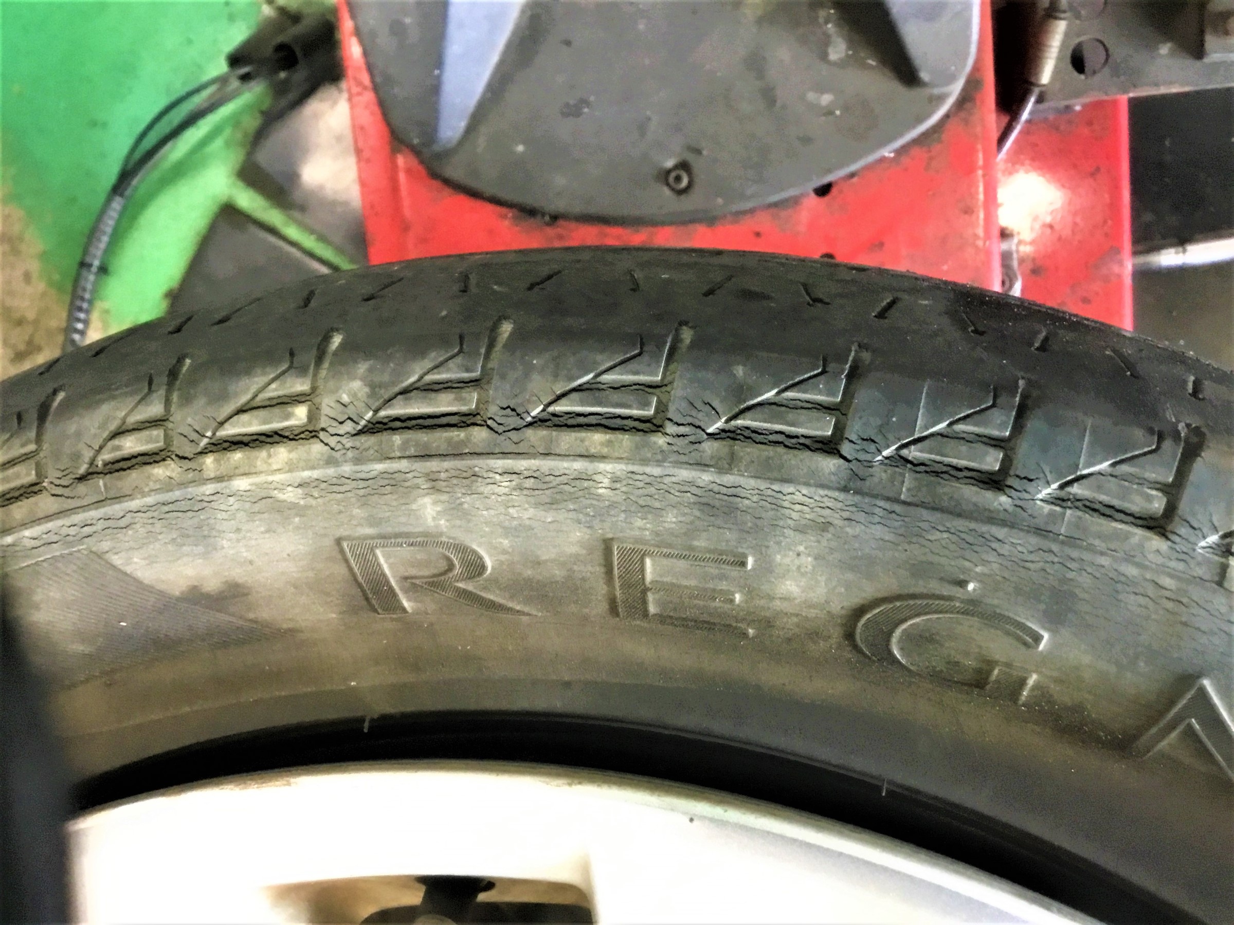 2012年製造のタイヤだったので経年劣化でのひび割れが多いですね(・_・;)大きくて重たいミニバンでこれは怖い・・・!