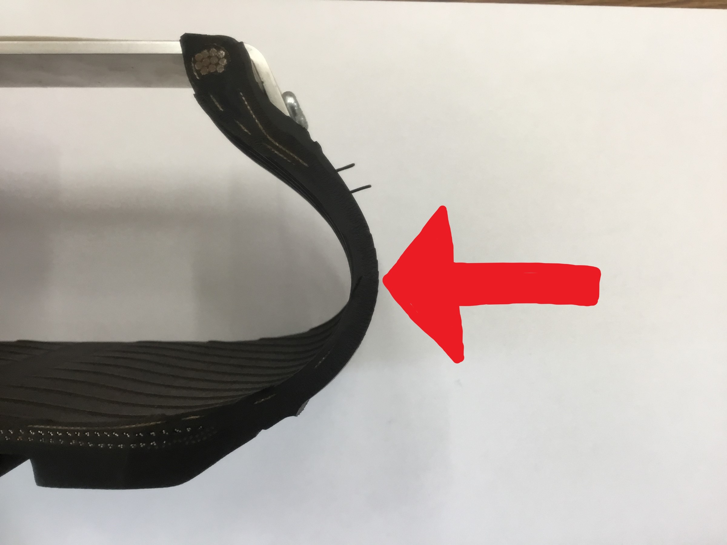 コチラはタイヤのカットサンプルですが、矢印で示している箇所が一番ゴムが薄いのがおわかりいただけますでしょうか(・_・;)