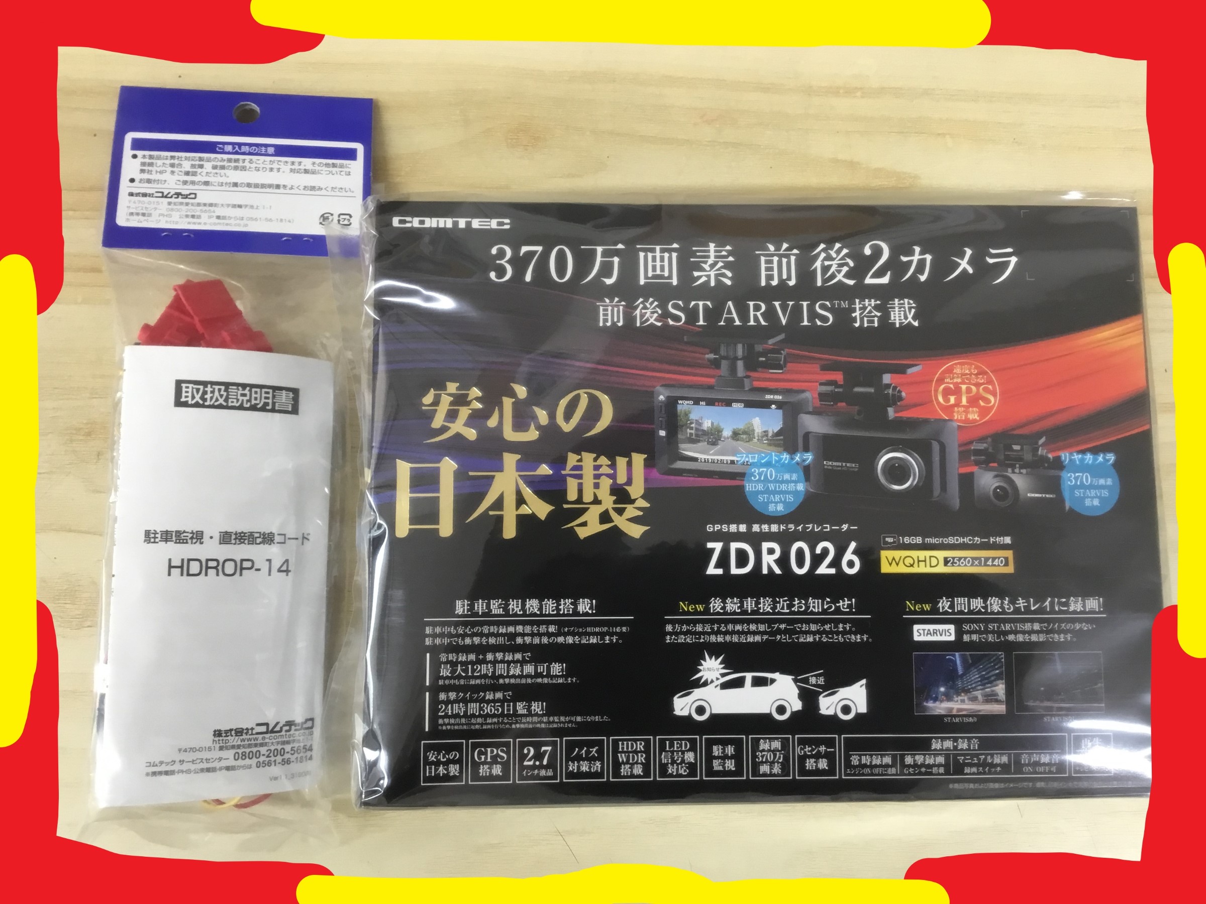 そして駐車監視モード(駐車中の防犯カメラモード)用の追加配線も装着で、当て逃げやイタズラも見逃しません!(`☆ω☆´)