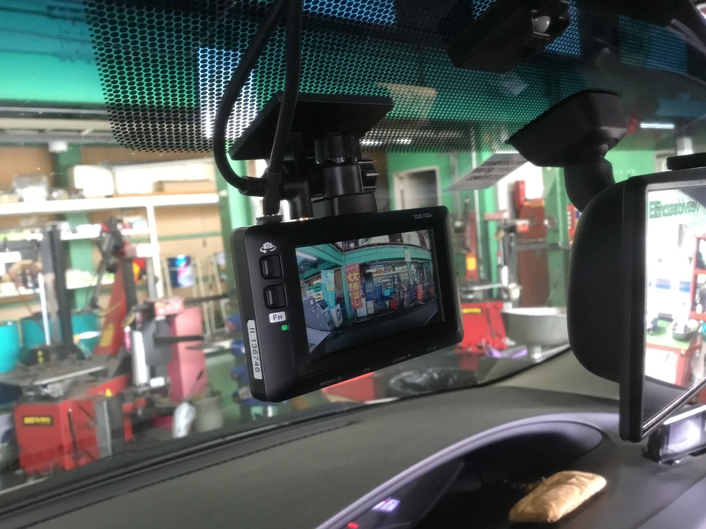 取り付けしまして、↑の写真は前カメラ映像を映した状態!