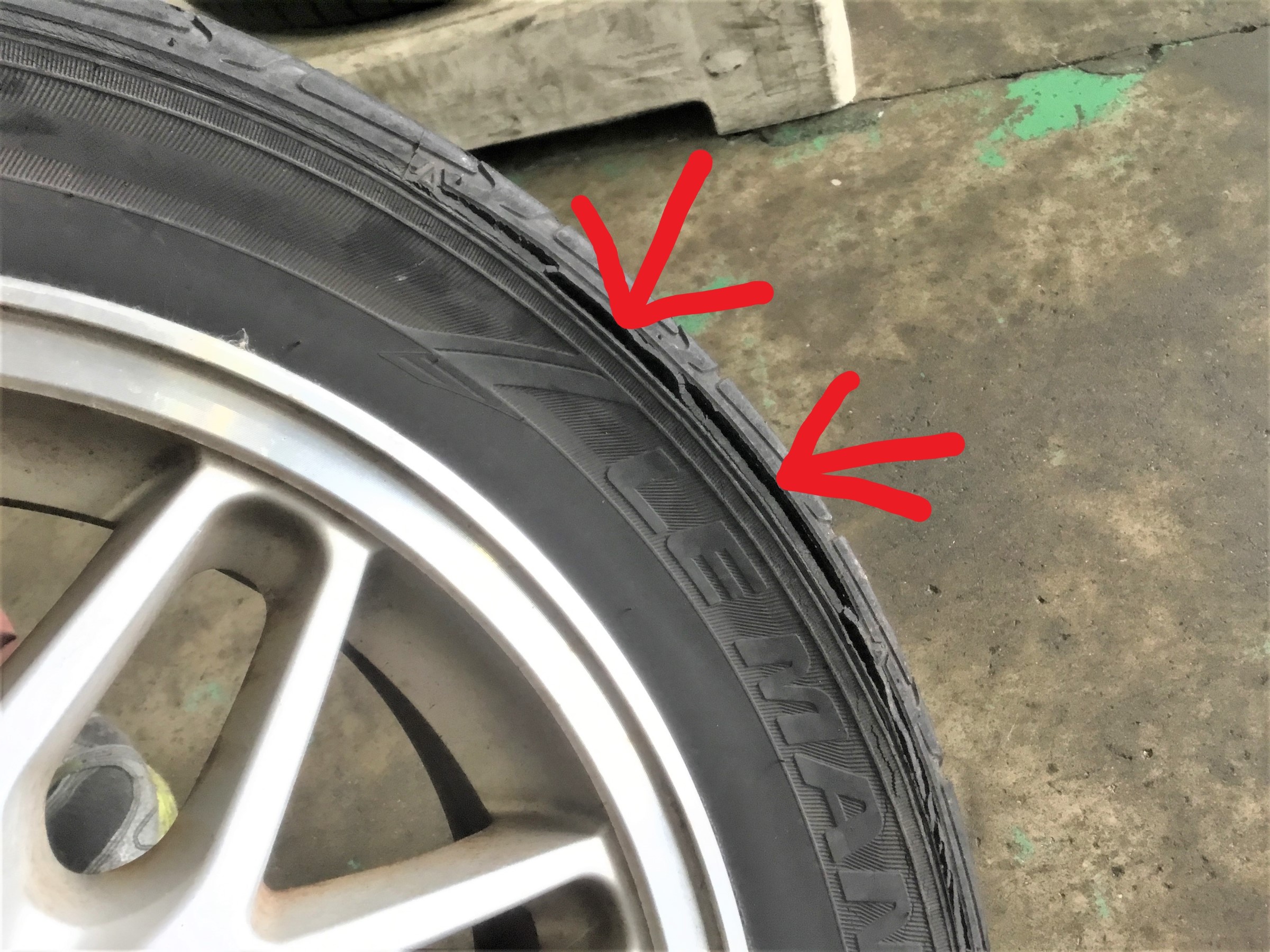 今まで使用されていたタイヤはショルダー部分にひび割れが・・・というか裂けてる・・・?(;´Д`)こりゃ危ない・・・!!